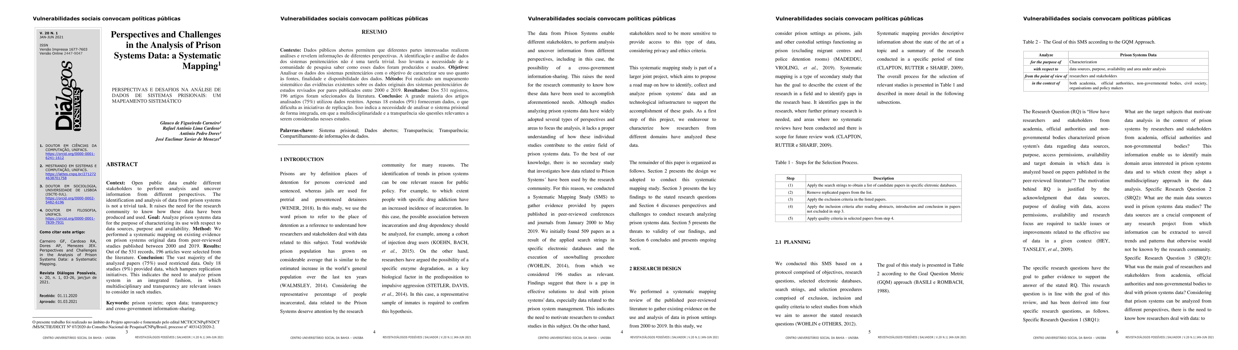 Context: Open public data enable different stakeholders to perform analysis and uncover information from different perspectives. The identification and analysis of data from prison systems is not a trivial task. It raises the need for the research community to know how these data have been produced and used. Goal: Analyze prison systems data for the purpose of characterizing its use with respect to data sources, purpose and availability. Method: We performed a systematic mapping on existing evidence on prison systems original data from peer-reviewed studies published between 2000 and 2019. Results: Out of the 531 records, 196 articles were selected from the literature. Conclusion: The vast majority of the analyzed papers (75%) used restricted data. Only 18 studies (9%) provided data, which hampers replication initiatives. This indicates the need to analyze prison system in an integrated fashion, in which multidisciplinary and transparency are relevant issues to consider in such studies.