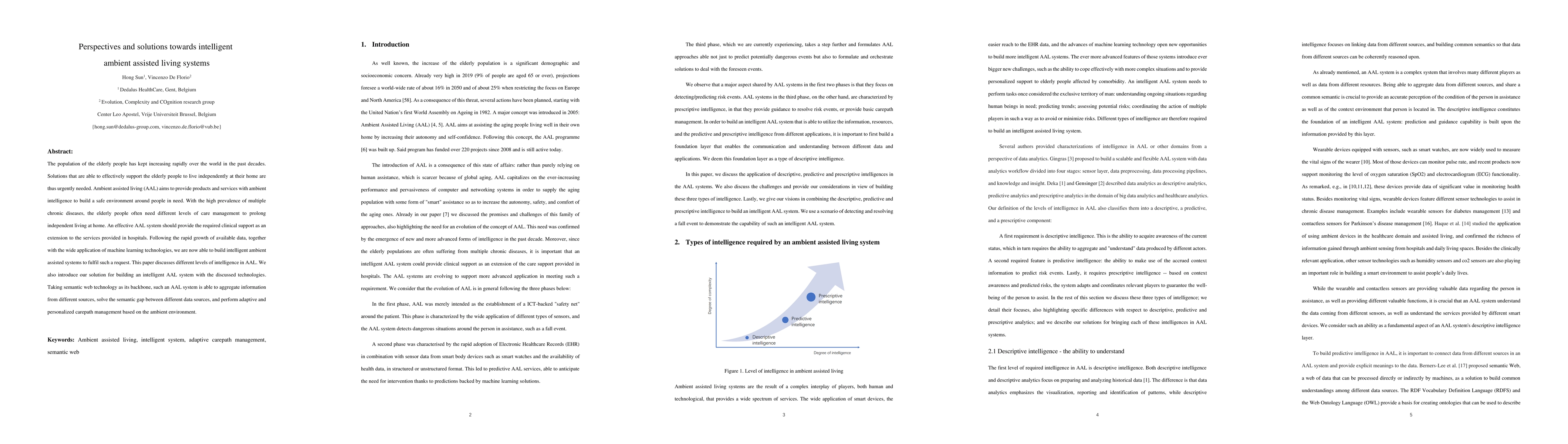 This paper explores intelligent ambient assisted living (AAL) systems to support elderly individuals living independently at home, addressing the growing need for effective care solutions. It proposes a solution leveraging semantic web technology to aggregate and manage diverse data sources, providing adaptive and personalized care pathways.