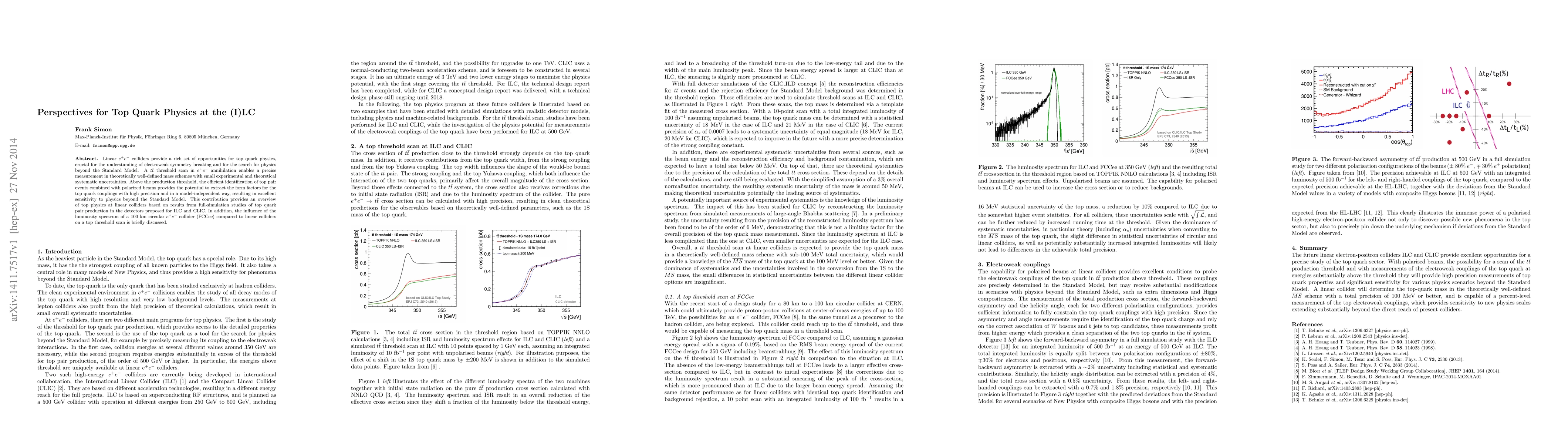 This paper reviews the potential of linear e+e- colliders for top quark physics, emphasizing precise measurements via ttbar threshold scans and the extraction of top quark coupling form factors with high precision. It also briefly compares the impact of a circular collider's luminosity spectrum on top threshold scans relative to linear colliders.