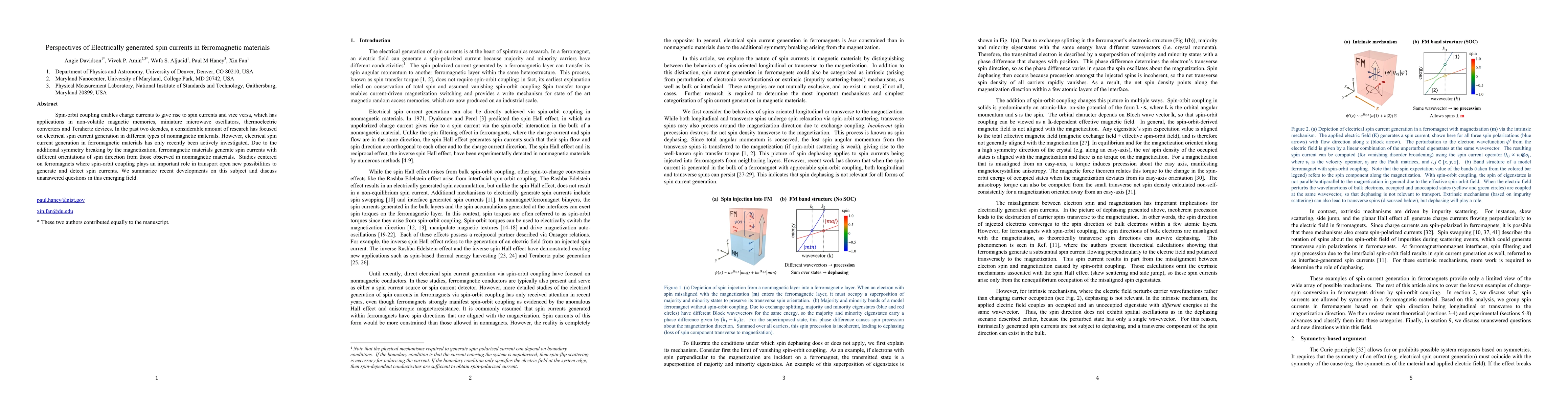 This paper explores the generation of spin currents in ferromagnetic materials through electrical means, highlighting the unique spin-orbit coupling dynamics that differentiate them from nonmagnetic materials. It reviews recent advancements and identifies key questions still open in this emerging research field.