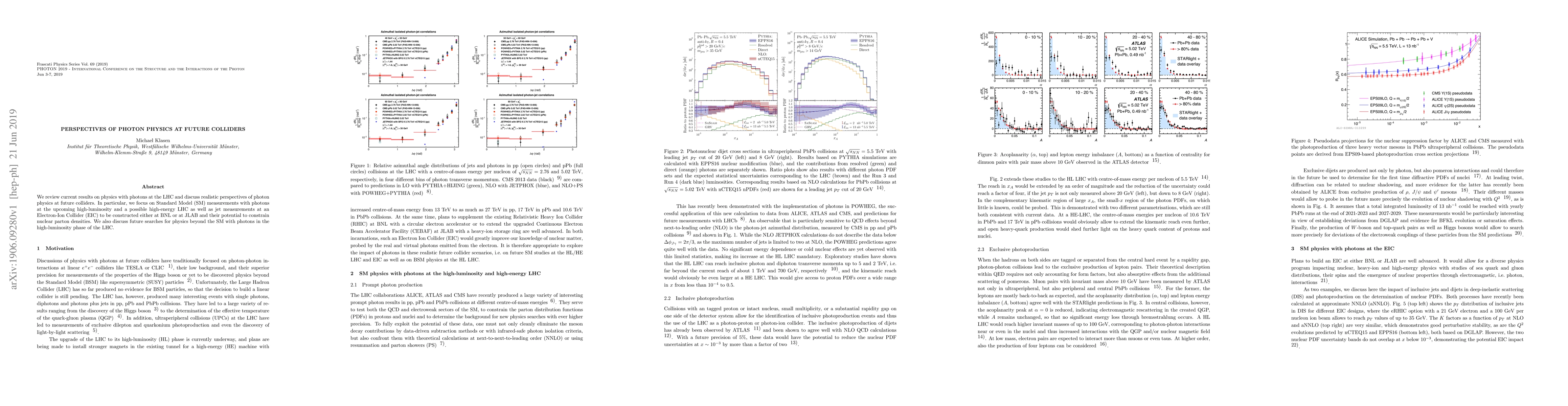 We review current results on physics with photons at the LHC and discuss realistic perspectives of photon physics at future colliders. In particular, we focus on Standard Model (SM) measurements with photons at the upcoming high-luminosity and a possible high-energy LHC as well as jet measurements at an Electron-Ion Collider (EIC) to be constructed either at BNL or at JLAB and their potential to constrain nuclear parton densities. We also discuss future searches for physics beyond the SM with photons in the high-luminosity phase of the LHC.