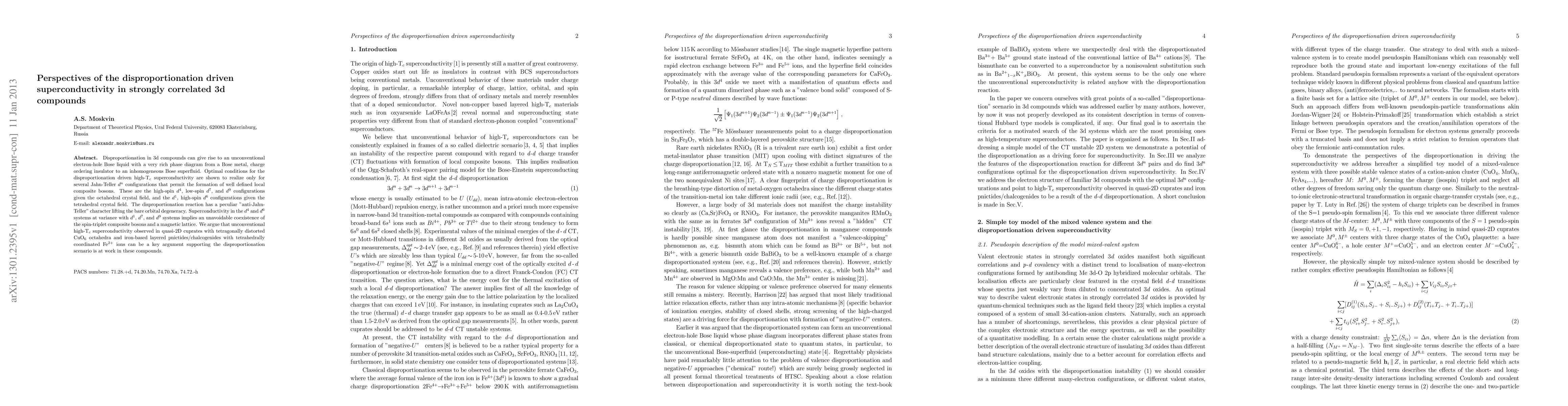 This paper explores the role of disproportionation in 3d compounds leading to unconventional superconductivity, identifying specific Jahn-Teller configurations that enable high-temperature superconductivity. It suggests that quasi-2D cuprates and iron-based pnictides/chalcogenides exhibit superconductivity consistent with a disproportionation-driven mechanism.