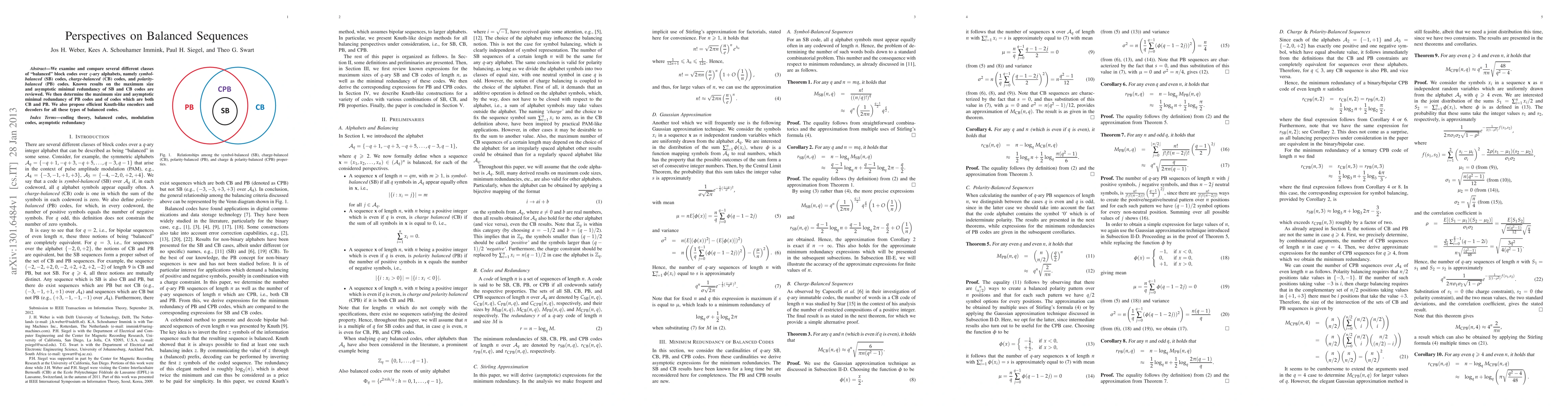 The paper examines and compares different classes of balanced block codes, reviewing known results on maximum size and asymptotic minimal redundancy for symbol-balanced, charge-balanced, and polarity-balanced codes, while also proposing efficient encoders and decoders.