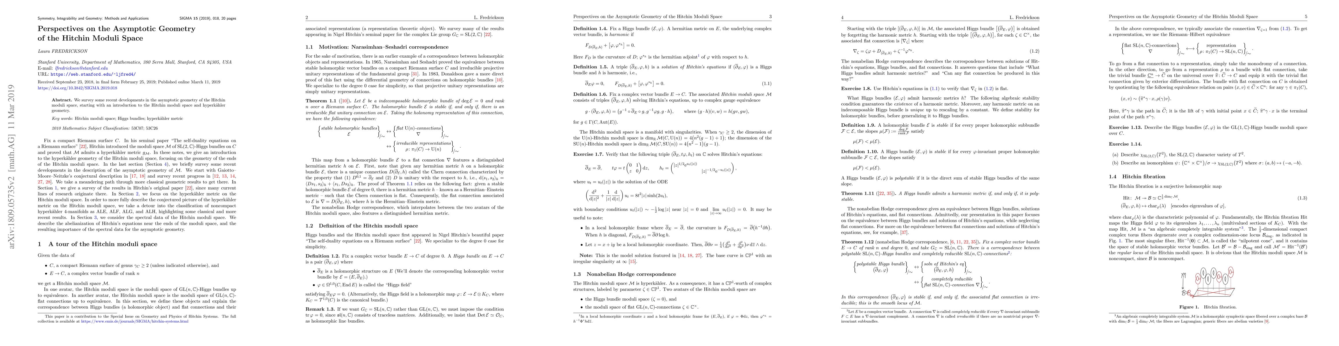 Summary: This paper surveys recent advancements in the asymptotic geometry of the Hitchin moduli space, beginning with foundational concepts in hyperkähler geometry and progressing through contemporary research developments.