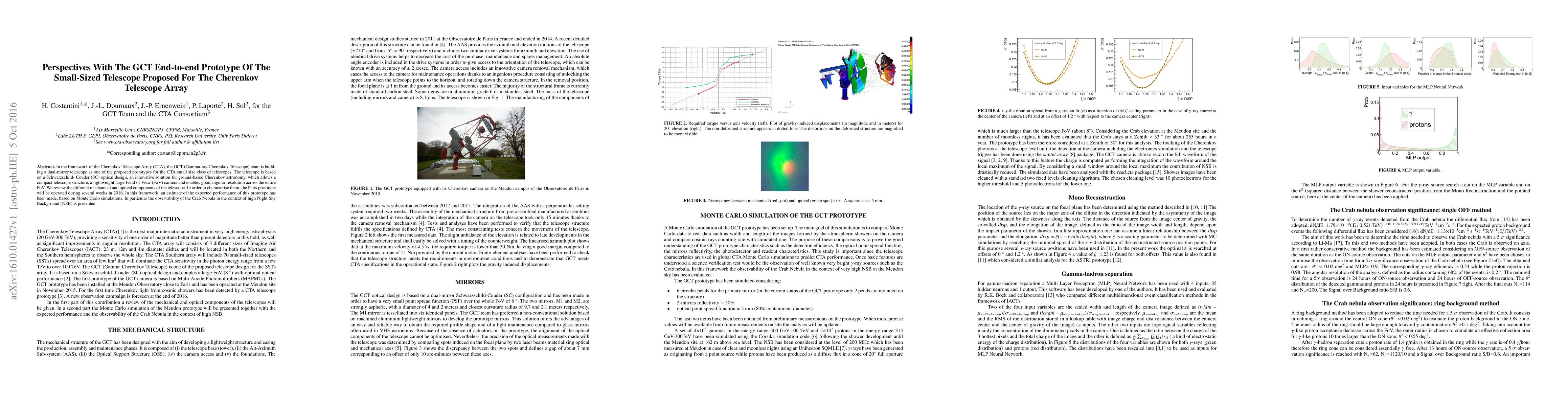 In the framework of the Cherenkov Telescope Array (CTA), the GCT (Gamma-ray Cherenkov Telescope) team is building a dual-mirror telescope as one of the proposed prototypes for the CTA small size class of telescopes. The telescope is based on a Schwarzschild- Couder (SC) optical design, an innovative solution for ground-based Cherenkov astronomy, which allows a compact telescope structure, a lightweight large Field of View (FoV) camera and enables good angular resolution across the entire FoV. We review the different mechanical and optical components of the telescope. In order to characterise them, the Paris prototype will be operated during several weeks in 2016. In this framework, an estimate of the expected performance of this prototype has been made, based on Monte Carlo simulations. In particular the observability of the Crab Nebula in the context of high Night Sky Background (NSB) is presented.