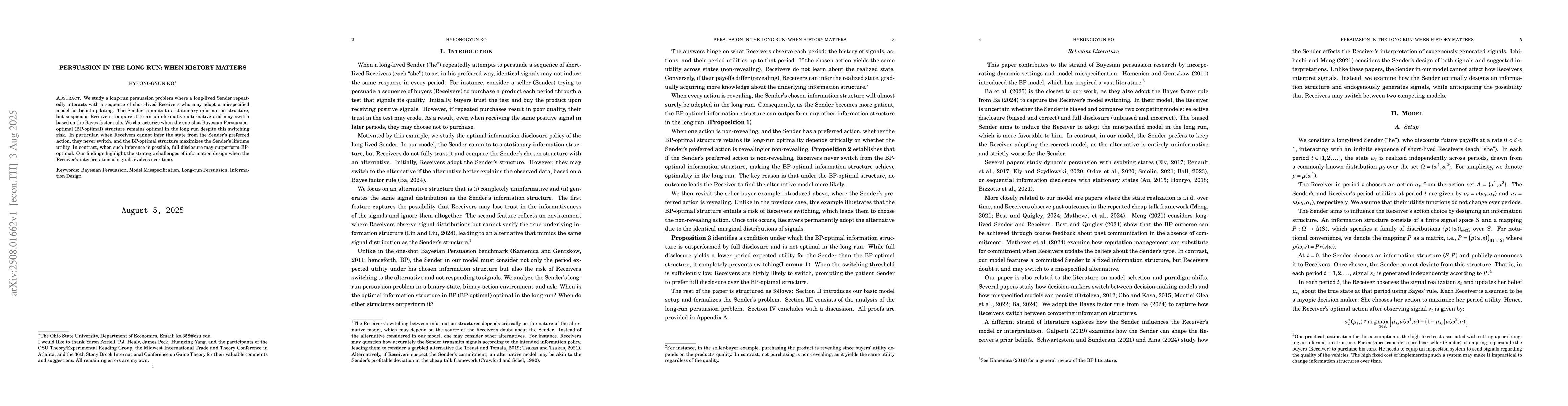 We study a long-run persuasion problem where a long-lived Sender repeatedly interacts with a sequence of short-lived Receivers who may adopt a misspecified model for belief updating. The Sender commits to a stationary information structure, but suspicious Receivers compare it to an uninformative alternative and may switch based on the Bayes factor rule. We characterize when the one-shot Bayesian Persuasion-optimal (BP-optimal) structure remains optimal in the long run despite this switching risk. In particular, when Receivers cannot infer the state from the Sender's preferred action, they never switch, and the BP-optimal structure maximizes the Sender's lifetime utility. In contrast, when such inference is possible, full disclosure may outperform BP-optimal. Our findings highlight the strategic challenges of information design when the Receivers' interpretation of signals evolves over time.