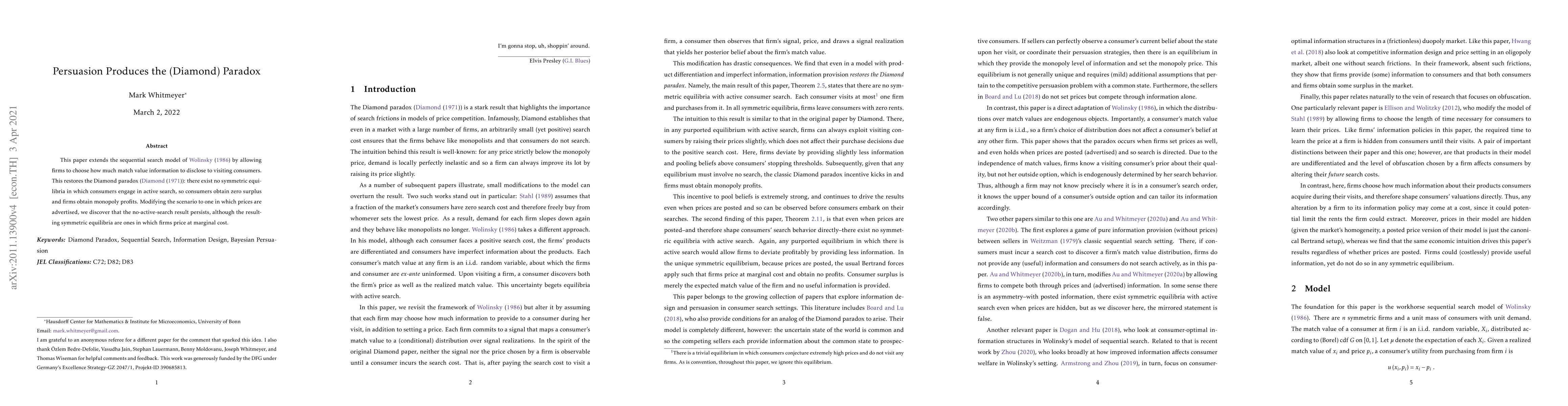 This paper extends the sequential search model of Wolinsky (1986) by allowing firms to choose how much match value information to disclose to visiting consumers. This restores the Diamond paradox (Diamond 1971): there exist no symmetric equilibria in which consumers engage in active search, so consumers obtain zero surplus and firms obtain monopoly profits. Modifying the scenario to one in which prices are advertised, we discover that the no-active-search result persists, although the resulting symmetric equilibria are ones in which firms price at marginal cost.