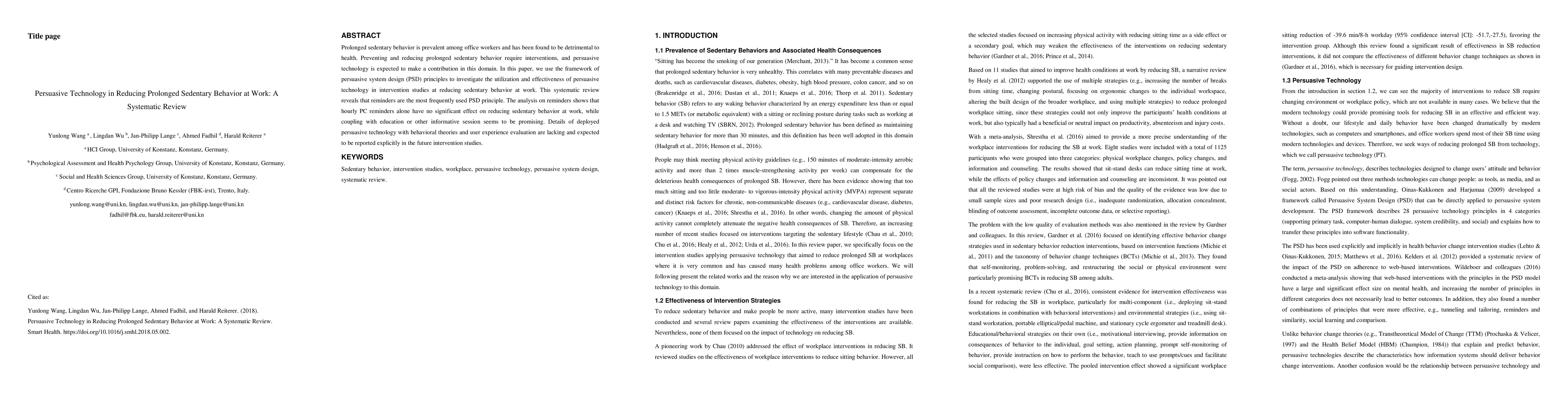 This systematic review examines the use of persuasive technology to reduce prolonged sedentary behavior among office workers, finding that reminders are the most common approach. While hourly reminders alone show no significant effect, combining them with educational sessions appears more effective, highlighting the need for detailed reporting of behavioral theories and user experiences in future studies.