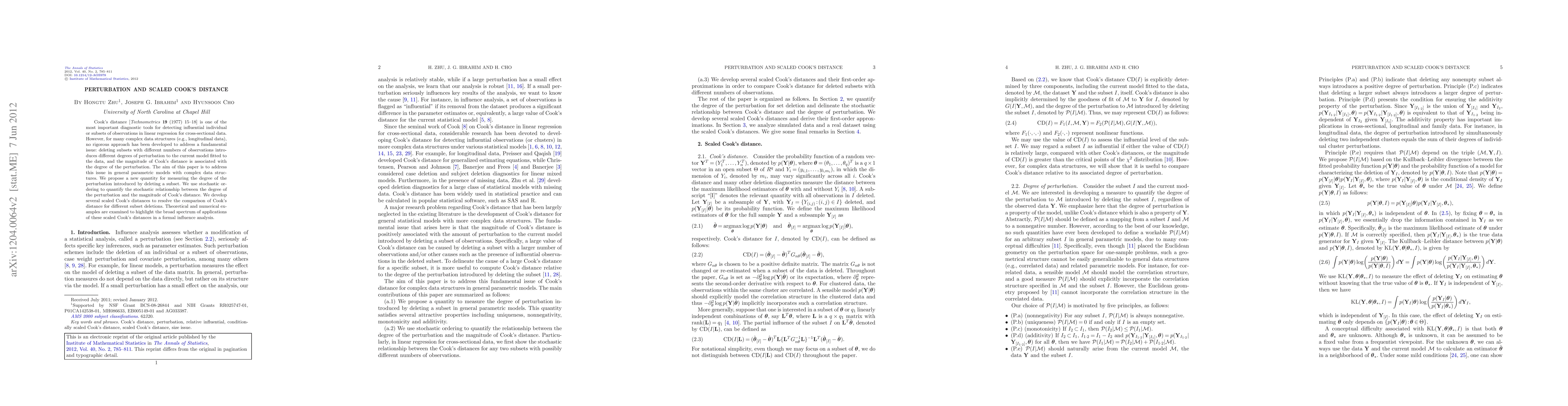 Cook's distance [Technometrics 19 (1977) 15-18] is one of the most important diagnostic tools for detecting influential individual or subsets of observations in linear regression for cross-sectional data. However, for many complex data structures (e.g., longitudinal data), no rigorous approach has been developed to address a fundamental issue: deleting subsets with different numbers of observations introduces different degrees of perturbation to the current model fitted to the data, and the magnitude of Cook's distance is associated with the degree of the perturbation. The aim of this paper is to address this issue in general parametric models with complex data structures. We propose a new quantity for measuring the degree of the perturbation introduced by deleting a subset. We use stochastic ordering to quantify the stochastic relationship between the degree of the perturbation and the magnitude of Cook's distance. We develop several scaled Cook's distances to resolve the comparison of Cook's distance for different subset deletions. Theoretical and numerical examples are examined to highlight the broad spectrum of applications of these scaled Cook's distances in a formal influence analysis.