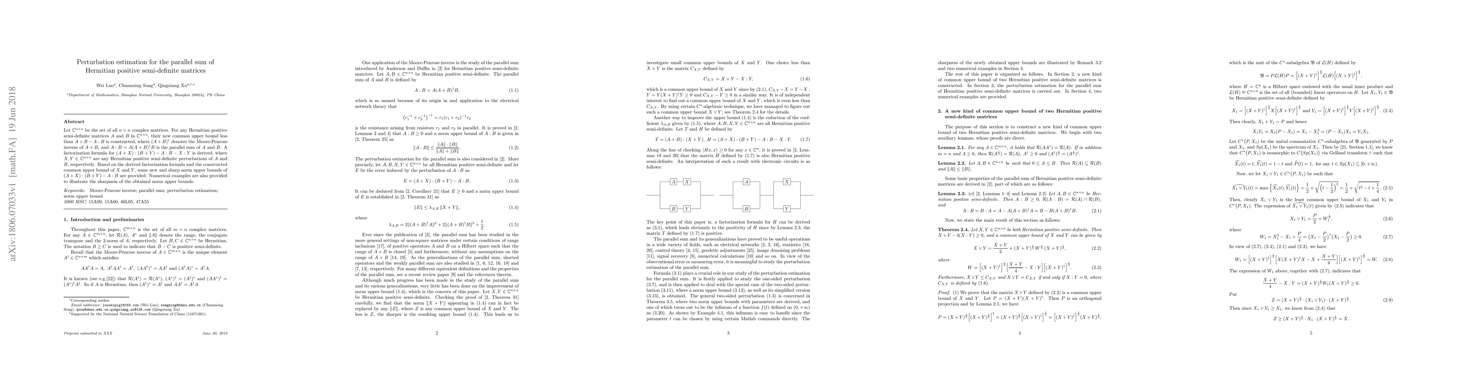 This research paper develops a new method for estimating the parallel sum of Hermitian positive semi-definite matrices, providing sharp norm upper bounds with minimal perturbations.