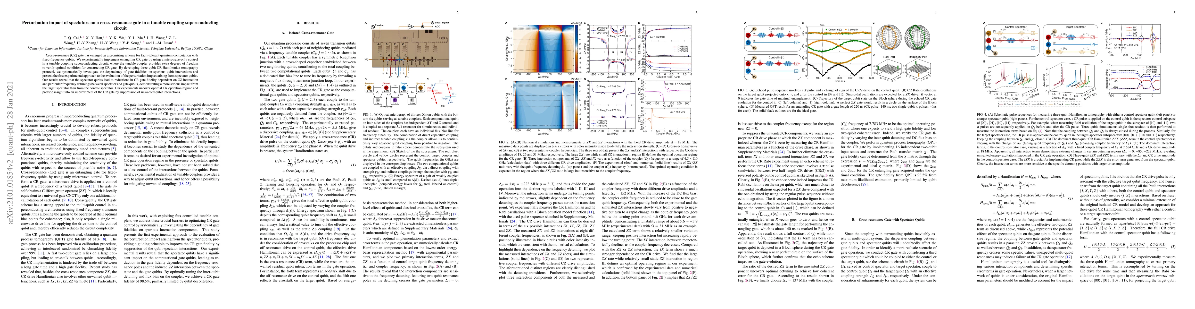 This paper experimentally investigates the impact of spectator qubits on the fidelity of a cross-resonance gate in a tunable coupling superconducting circuit. The study reveals that spectator qubits reduce gate fidelity through ZZ interactions and specific frequency detunings, with the target spectator having a more significant effect than the control spectator.