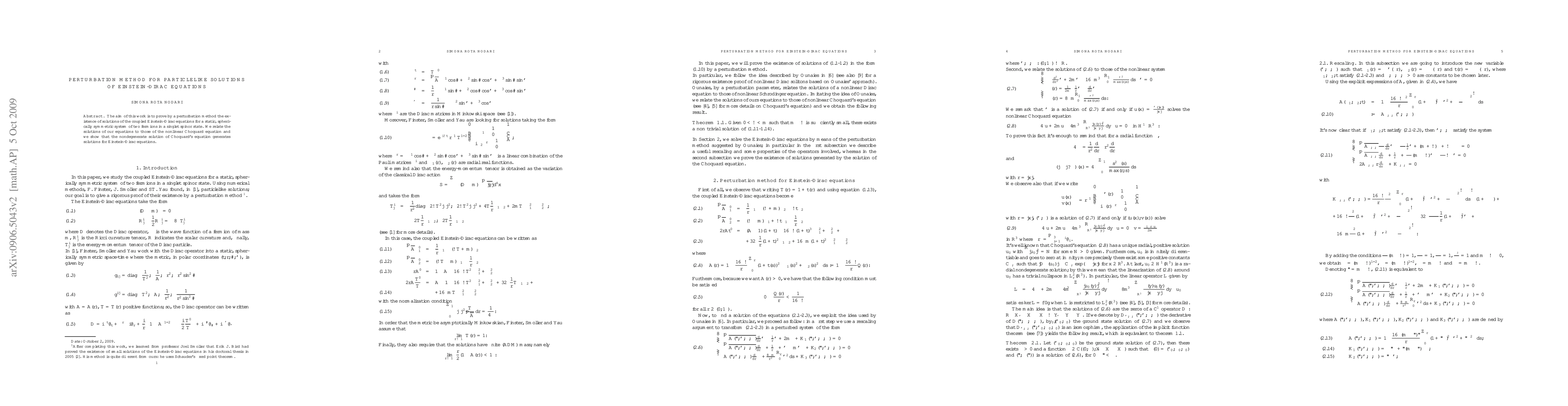 This paper employs a perturbation method to demonstrate the existence of particlelike solutions for the coupled Einstein-Dirac equations describing a static, spherically symmetric system of two fermions in a singlet spinor state. It also establishes a connection between these solutions and those of the nonlinear Choquard equation, showing that the nondegenerate solution of the latter generates solutions for the former.