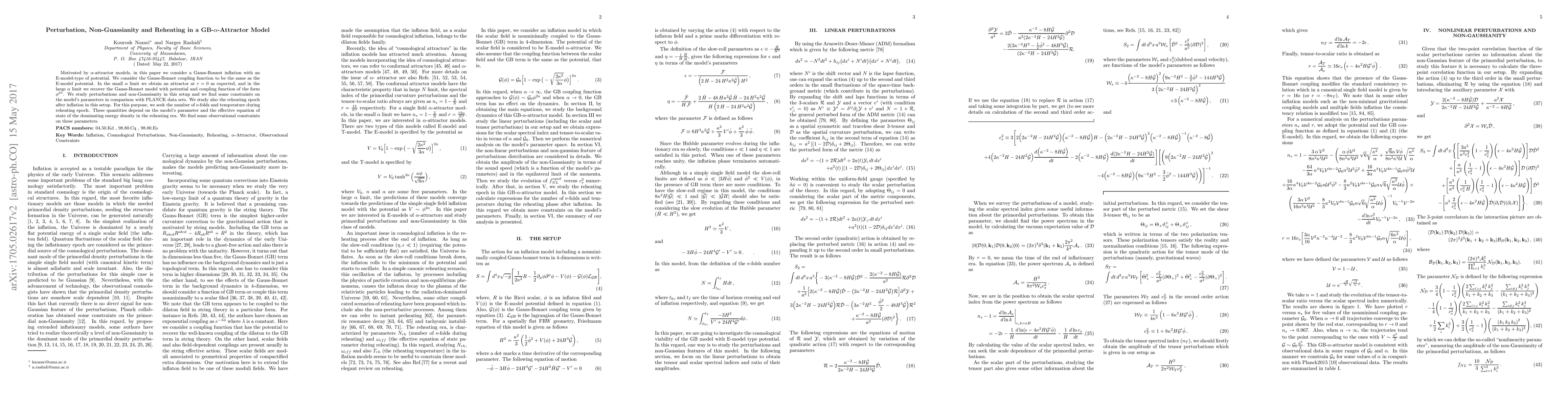 This paper explores a Gauss-Bonnet inflation model with an E-model potential, examining perturbations, non-Gaussianity, and the reheating epoch. It finds constraints on model parameters by comparing with PLANCK data and determines the number of e-folds and temperature during reheating based on the model's parameters and effective equation of state.