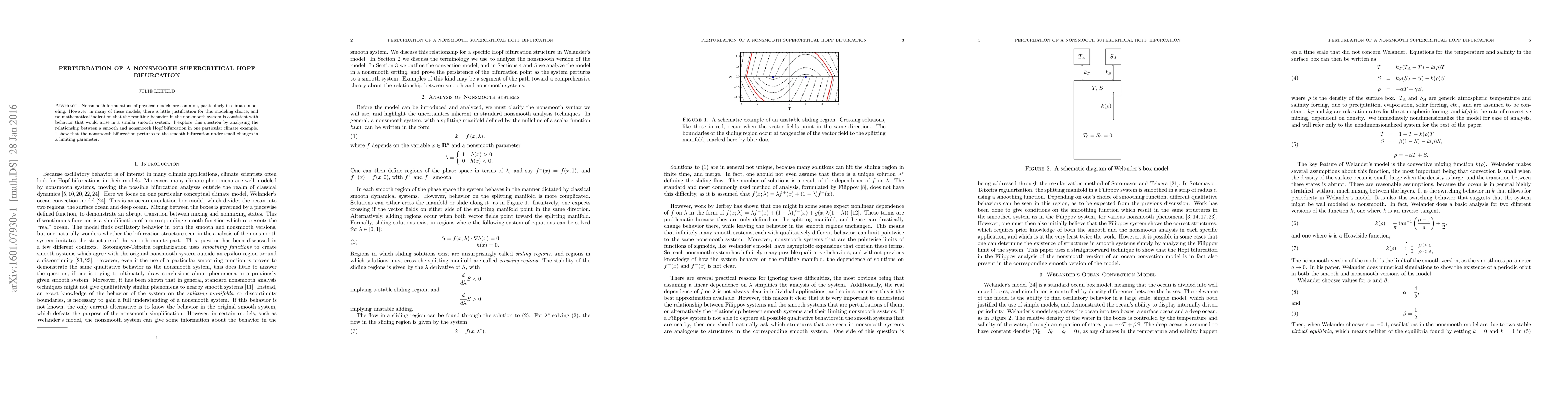 This paper investigates the consistency between smooth and nonsmooth formulations of a climate model, focusing on the perturbation of a nonsmooth supercritical Hopf bifurcation. It demonstrates that small changes in a limiting parameter can align the behavior of the nonsmooth bifurcation with that of a smooth one.