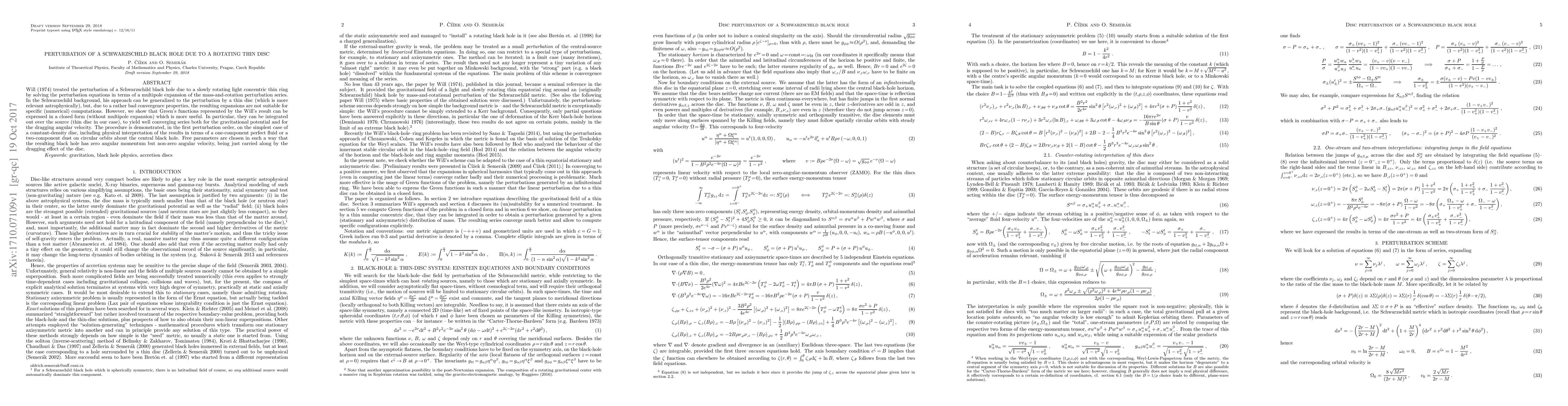 Researchers found a new method to calculate the effects of a rotating thin disc on a Schwarzschild black hole, allowing for more accurate simulations and better understanding of gravitational waves and angular velocity.