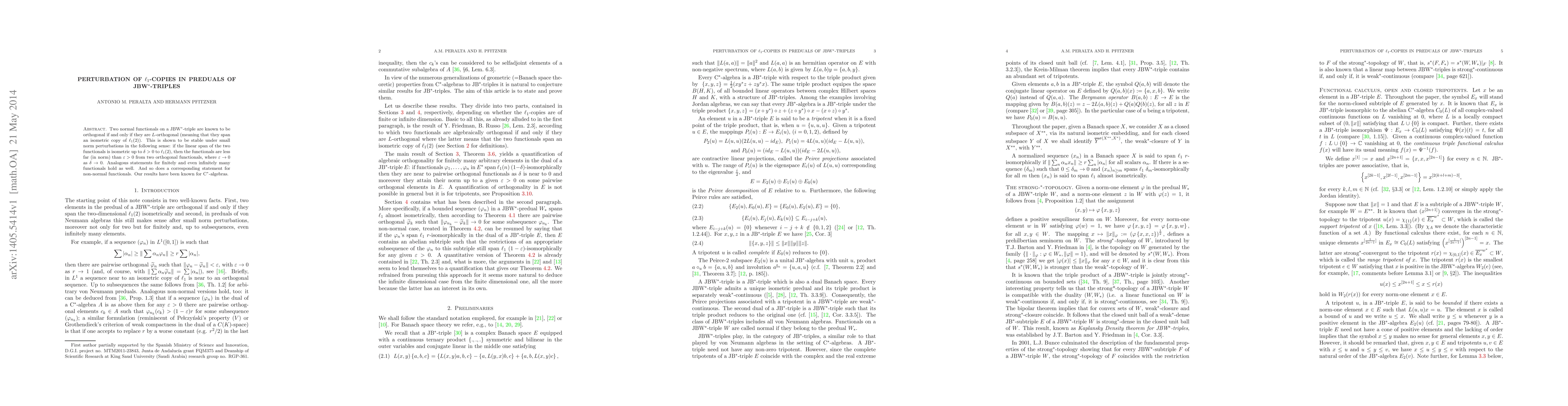 Research shows that small perturbations in functionals on JBW$^*$-triples preserve their orthogonality up to a certain limit, even when the span is only isometric to $ heta_1(2)$.