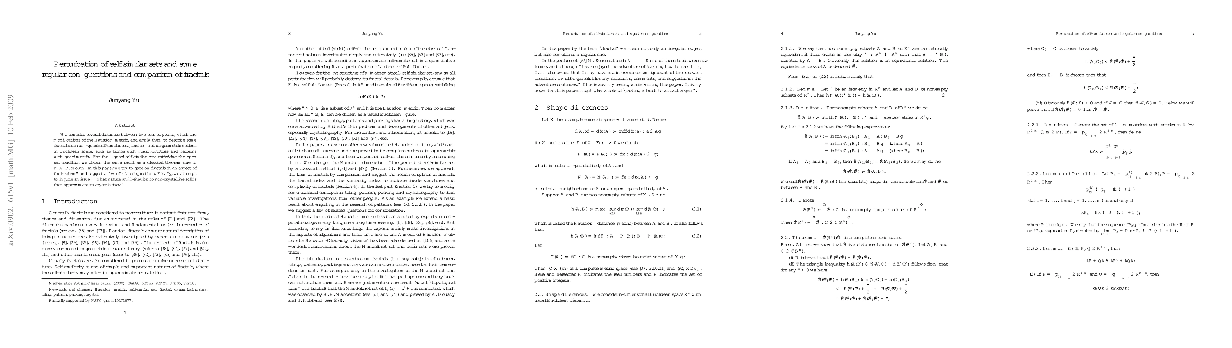 We consider several distances between two sets of points, which are modifications of the Hausdorff metric, and apply them to describe some fractals such as $\delta$-quasi-self-similar sets, and some other geometric notions in Euclidean space, such as tilings with quasi-prototiles and patterns with quasi-motifs. For the $\delta$-quasi-self-similar sets satisfying the open set condition we obtain the same result as a classical theorem due to P. A. P. Moran. In this paper we try to gaze on fractals in an aspect of their "form" and suggest a few of related questions. Finally, we attempt to inquire an issue -- what nature and behavior do non-crystalline solids that approximate to crystals show?