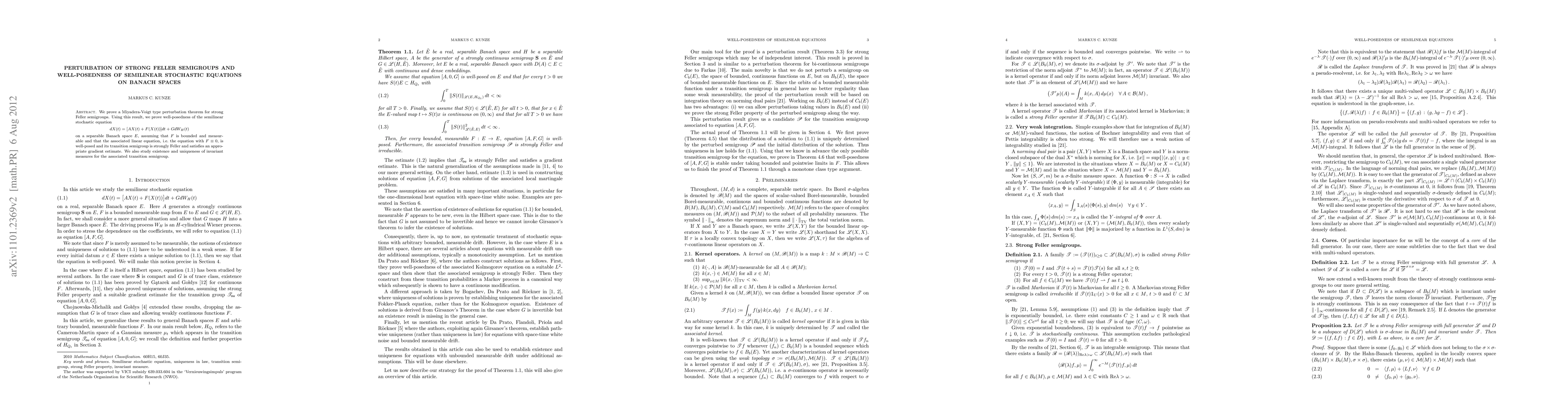 This paper proves a Miyadera-Voigt type perturbation theorem for strong Feller semigroups, ensuring well-posedness of certain semilinear stochastic equations on separable Banach spaces.