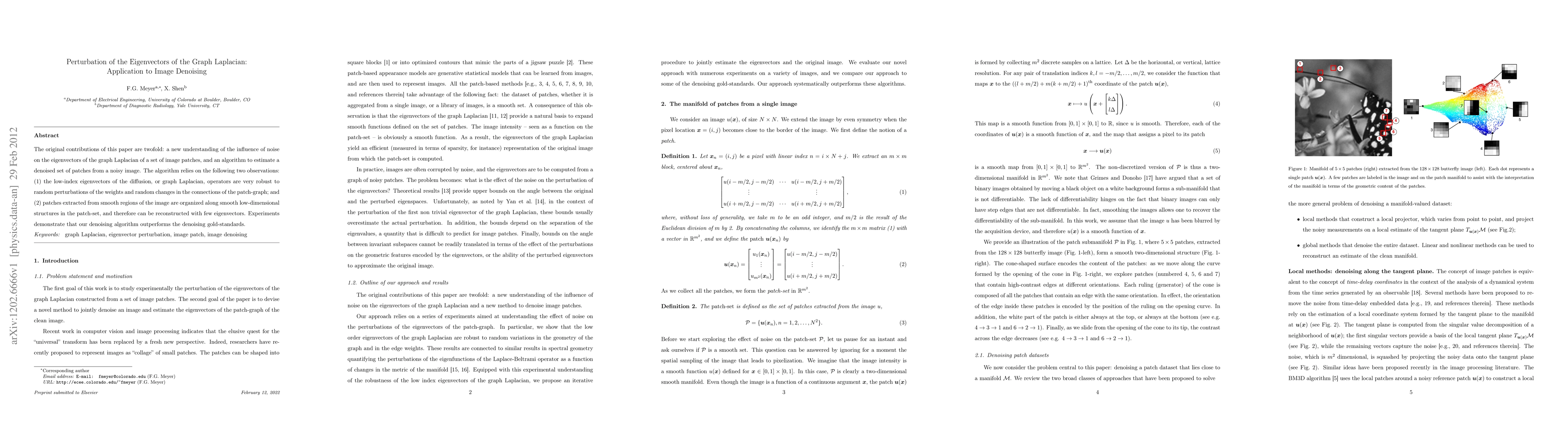 This paper introduces a novel understanding of how noise affects the eigenvectors of the graph Laplacian for image patches and proposes an algorithm to denoise images. The method leverages the robustness of low-index eigenvectors and the organization of smooth patches, achieving superior denoising performance compared to existing standards.