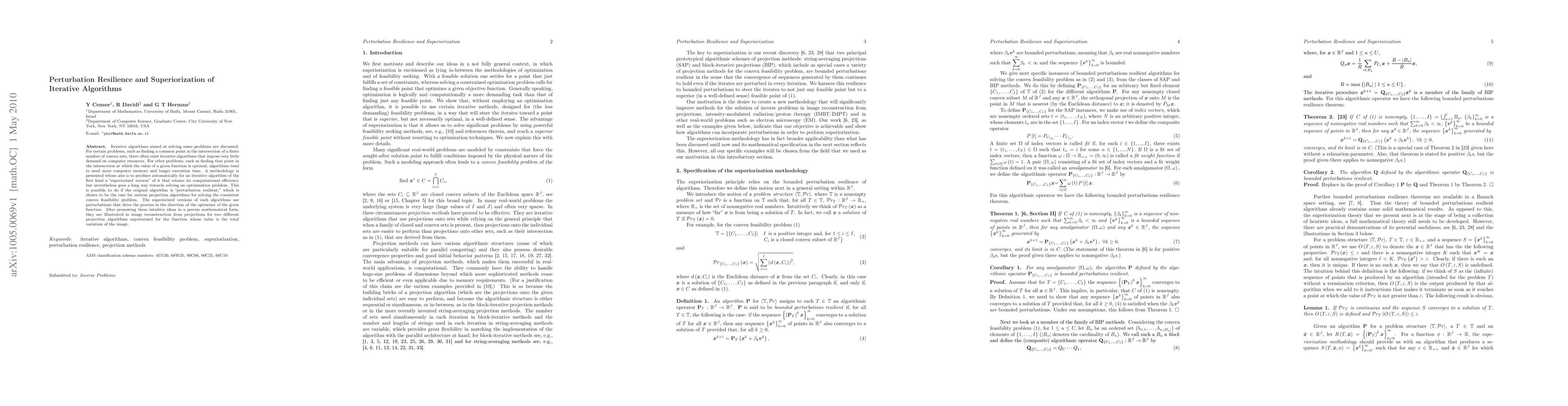This paper presents a methodology to create "superiorized versions" of efficient iterative algorithms that retain computational efficiency while improving performance on optimization problems. It demonstrates this through perturbation resilient projection algorithms, showing their application in image reconstruction by optimizing total variation.