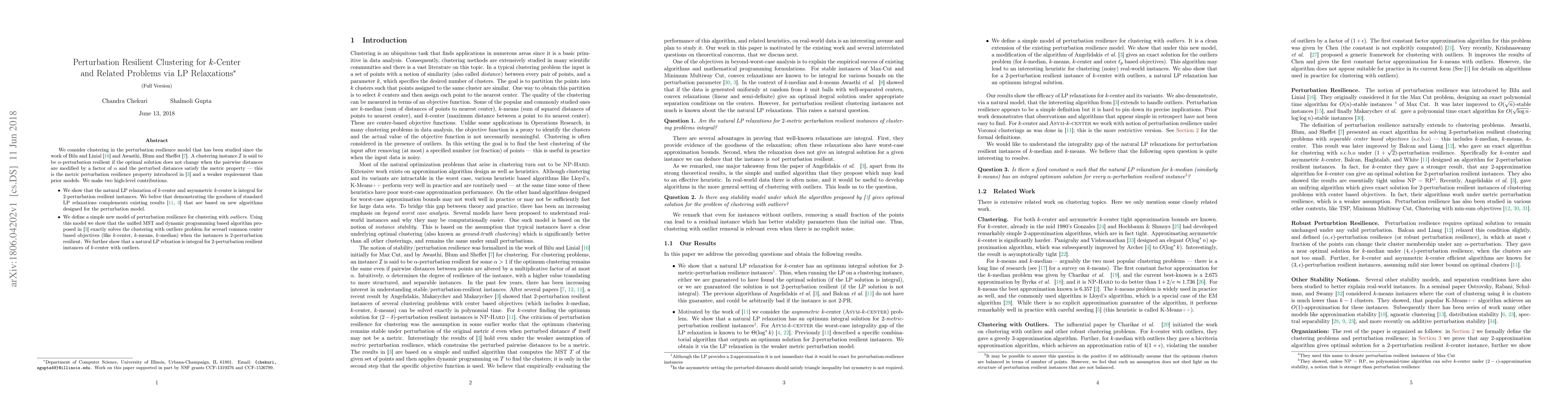 This paper explores clustering in the perturbation resilience model, demonstrating that the LP relaxation of $k$-center and asymmetric $k$-center is integral for $2$-perturbation resilient instances. It also introduces a new model of perturbation resilience for clustering with outliers, showing that a specific algorithm solves clustering with outliers exactly for common objectives when instances are $2$-perturbation resilient.