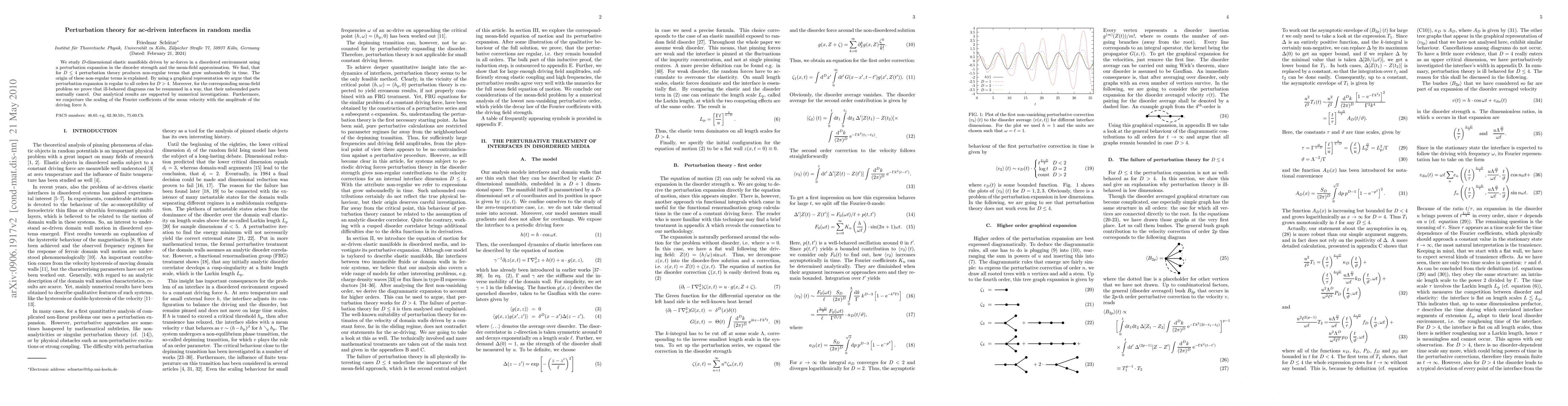 Researchers study ac-driven interfaces in random media using perturbation theory and find that it produces regular results for dimensions greater than 4, but leads to unbounded terms for dimensions 4 or less.