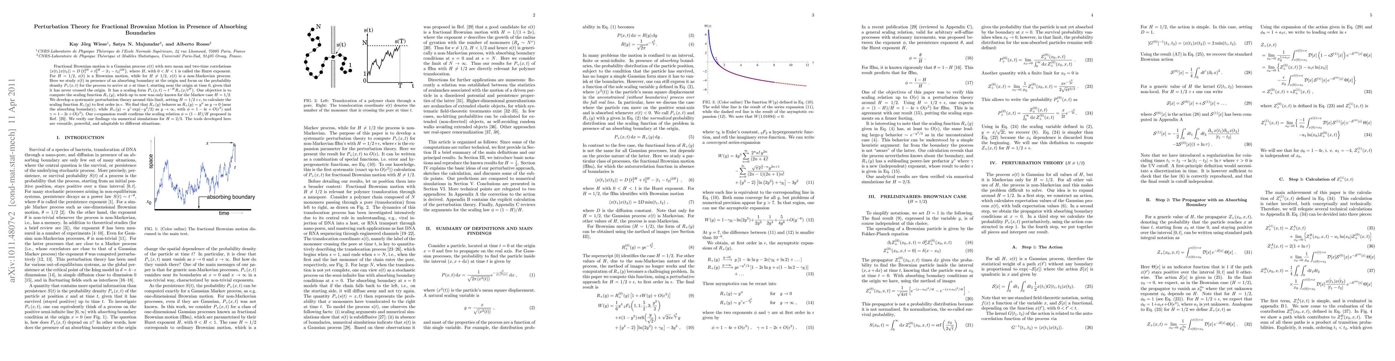This paper develops a perturbation theory for fractional Brownian motion with an absorbing boundary, focusing on the scaling function R(y) for non-Markovian processes (0 < H < 1). It computes R(y) to first order in ε, confirming the proposed scaling relation and verifying results numerically for H = 2/3.