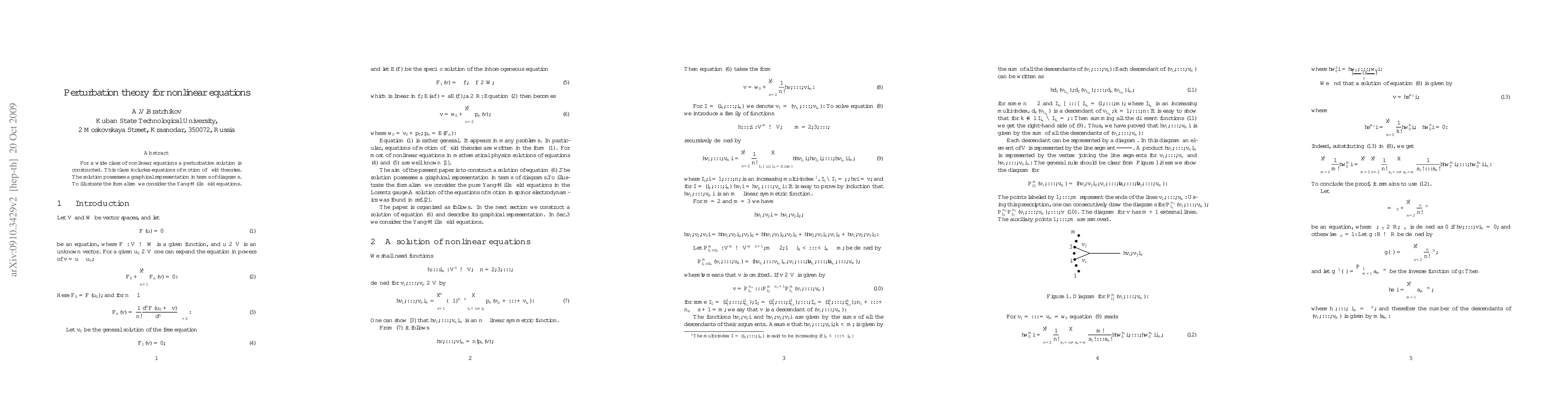 For a wide class of nonlinear equations a perturbative solution is constructed. This class includes equations of motion of field theories. The solution possesses a graphical representation in terms of diagrams. To illustrate the formalism we consider the Yang-Mills field equations.