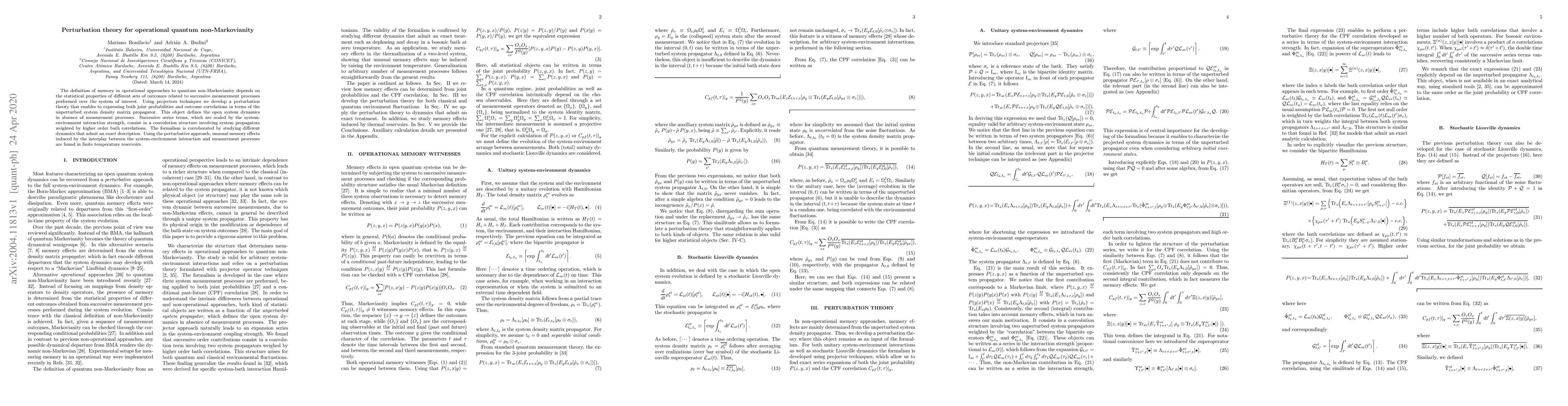 This paper develops a perturbation theory for operational quantum non-Markovianity, expressing joint probabilities and outcome correlations in terms of the unperturbed system density matrix propagator. The approach reveals unusual memory effects in finite temperature reservoirs due to the interplay between system-environment interaction and measurement processes.