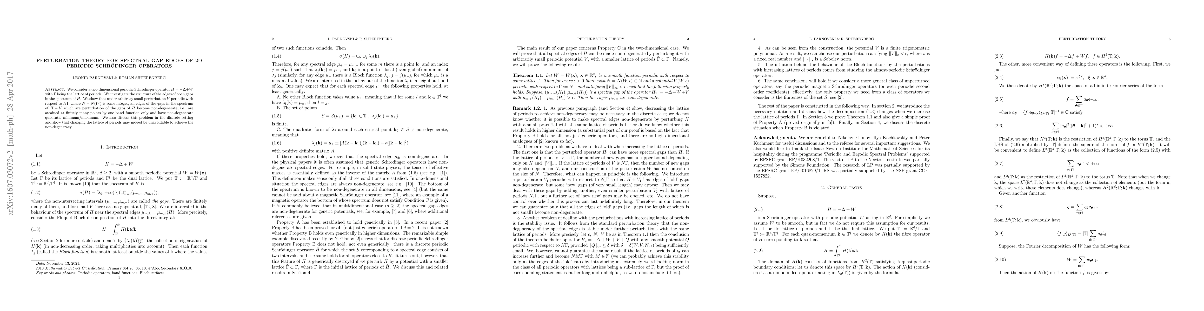 Researchers show that adding a small perturbation to a 2D periodic Schr"odinger operator can make its spectral gaps non-degenerate, meaning they have only one band function associated with them and a unique quadratic minimum or maximum point. This finding has implications for the study of quantum systems.
