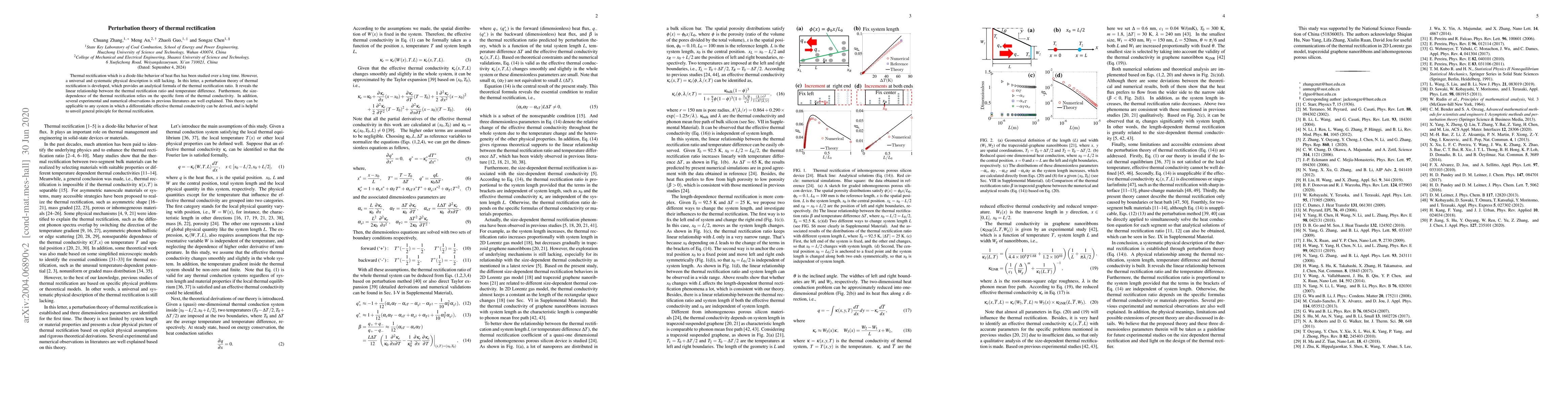 This paper develops a perturbation theory for thermal rectification, providing an analytical formula for the thermal rectification ratio and revealing a linear relationship with temperature difference. The theory explains size-dependent effects based on thermal conductivity and aligns well with previous experimental and numerical observations.