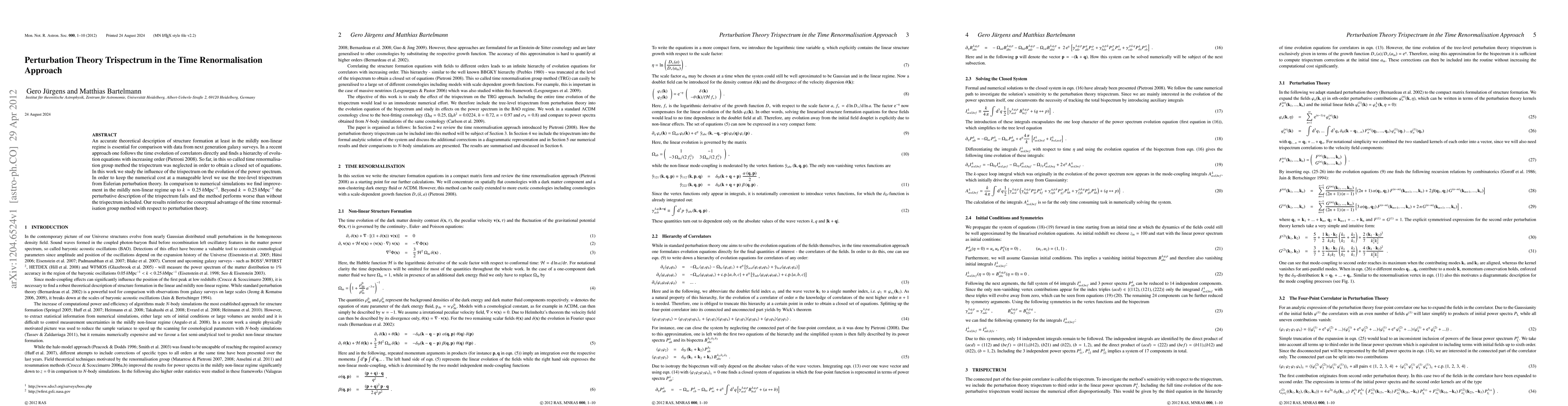This paper investigates the impact of the trispectrum in the time renormalisation group method on the evolution of the power spectrum, enhancing the mildly non-linear regime predictions up to k = 0.25 h/Mpc. Beyond this scale, the perturbative trispectrum fails, highlighting the method's superior conceptual framework compared to traditional perturbation theory.