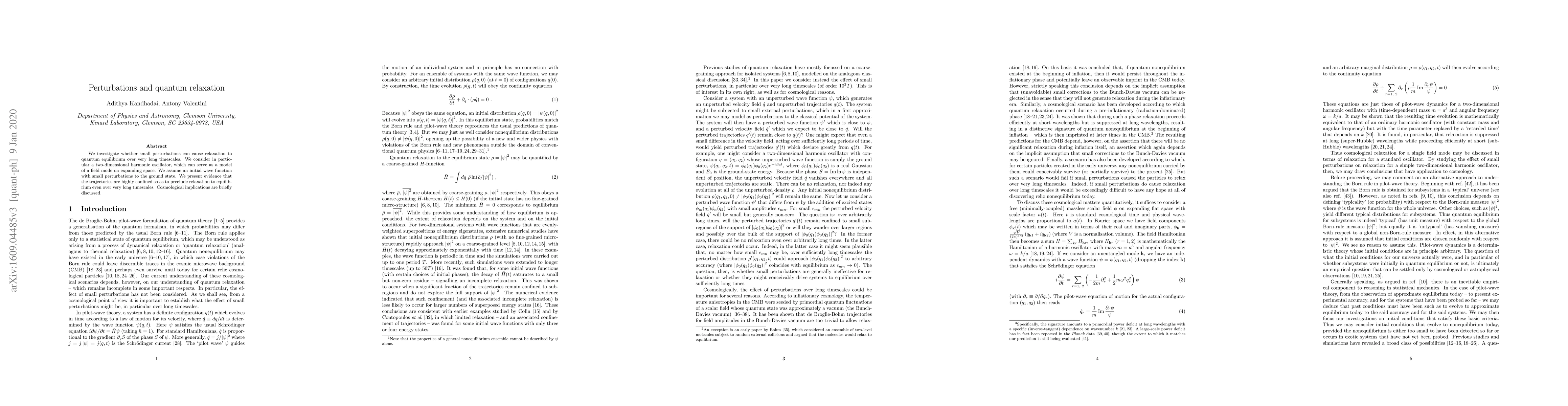 We investigate whether small perturbations can cause relaxation to quantum equilibrium over very long timescales. We consider in particular a two-dimensional harmonic oscillator, which can serve as a model of a field mode on expanding space. We assume an initial wave function with small perturbations to the ground state. We present evidence that the trajectories are highly confined so as to preclude relaxation to equilibrium even over very long timescales. Cosmological implications are briefly discussed.