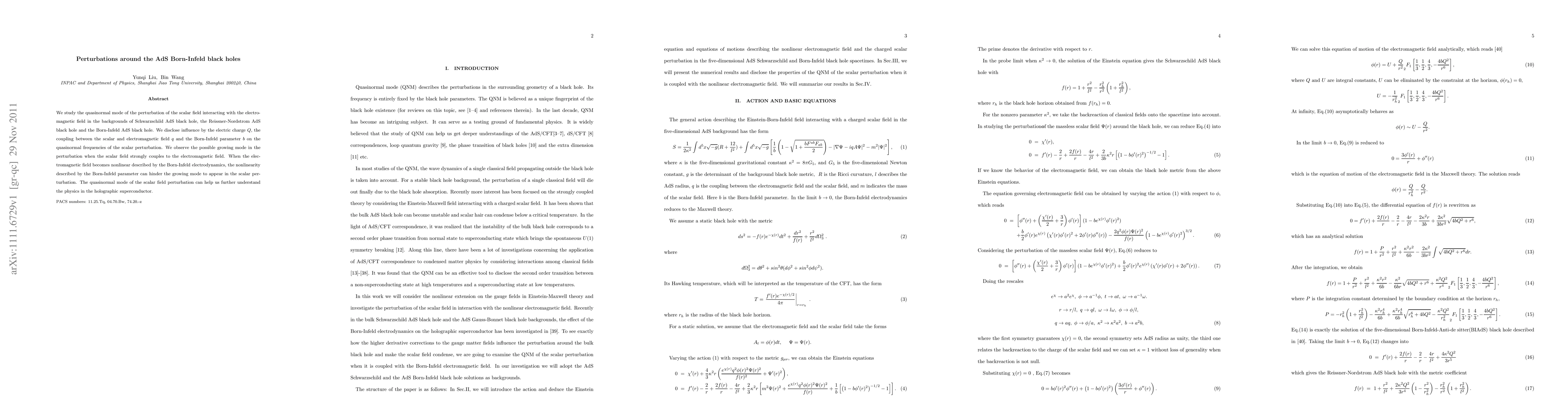 We study the quasinormal mode of the perturbation of the scalar field interacting with the electromagnetic field in the backgrounds of Schwarzschild AdS black hole, the Reissner-Nordstrom AdS black hole and the Born-Infeld AdS black hole. We disclose influence by the electric charge $Q$, the coupling between the scalar and electromagnetic field $q$ and the Born-Infeld parameter $b$ on the quasinormal frequencies of the scalar perturbation. We observe the possible growing mode in the perturbation when the scalar field strongly couples to the electromagnetic field. When the electromagnetic field becomes nonlinear described by the Born-Infeld electrodynamics, the nonlinearity described by the Born-Infeld parameter can hinder the growing mode to appear in the scalar perturbation. The quasinormal mode of the scalar field perturbation can help us further understand the physics in the holographic superconductor.