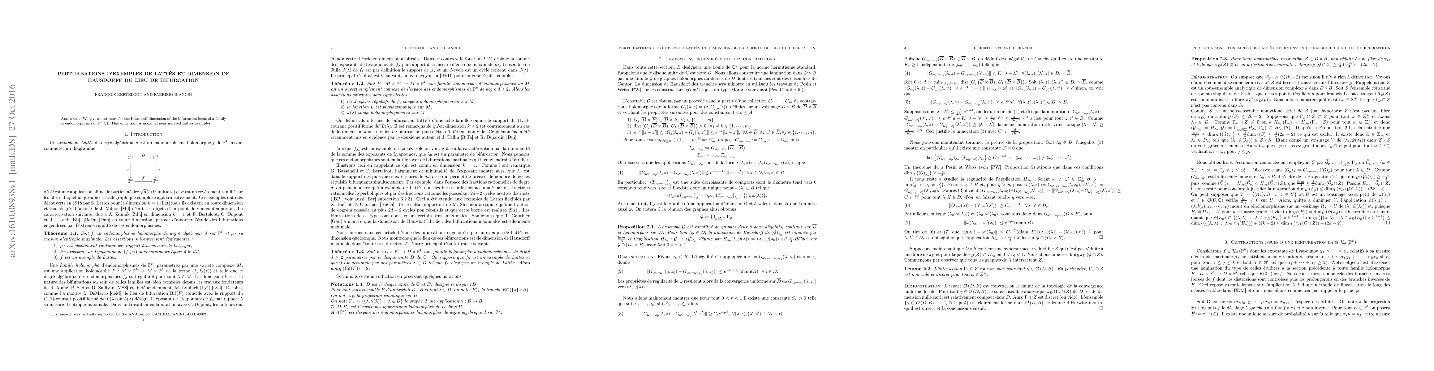 Researchers estimate the Hausdorff dimension of bifurcation loci in complex systems, finding it is maximal near isolated Lattés examples.