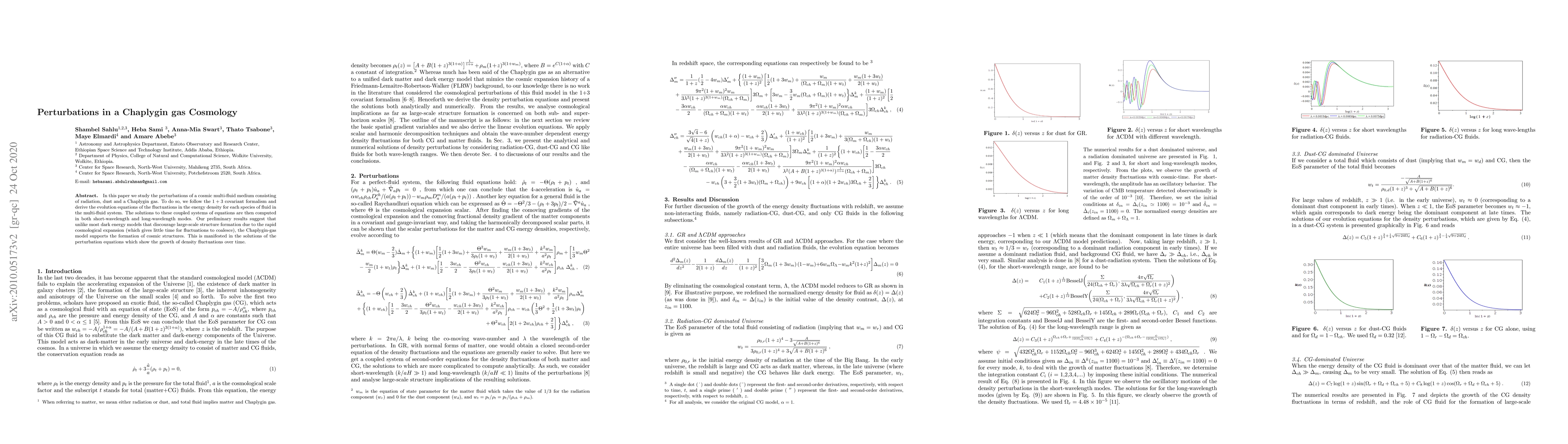 In this paper we study the perturbations of a cosmic multi-fluid medium consisting of radiation, dust and a Chaplygin gas. To do so, we follow the 1 + 3 covariant formalism and derive the evolution equations of the fluctuations in the energy density for each species of fluid in the multi-fluid system. The solutions to these coupled systems of equations are then computed in both short-wavelength and long-wavelength modes. Our preliminary results suggest that unlike most dark energy models that discourage large-scale structure formation due to the rapid cosmological expansion (which gives little time for fluctuations to coalesce), the Chaplygin-gas model supports the formation of cosmic structures. This is manifested in the solutions of the perturbation equations which show the growth of density fluctuations over time.