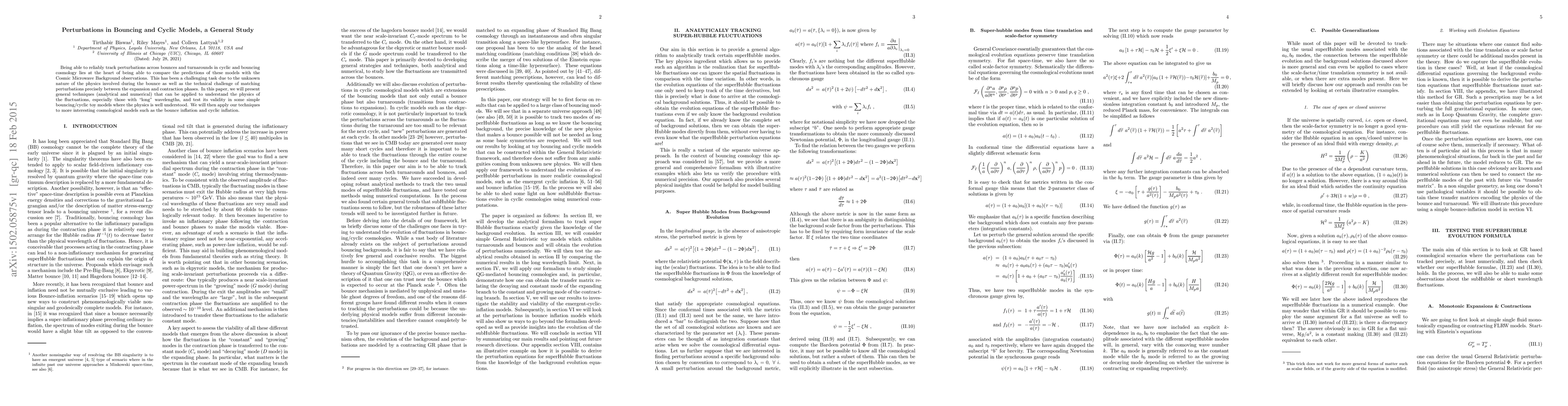 This paper develops general analytical and numerical techniques to study perturbations in bouncing and cyclic cosmology models, focusing on matching fluctuations across phase transitions. It tests these methods in simple toy models before applying them to more complex scenarios like bounce inflation and cyclic inflation.