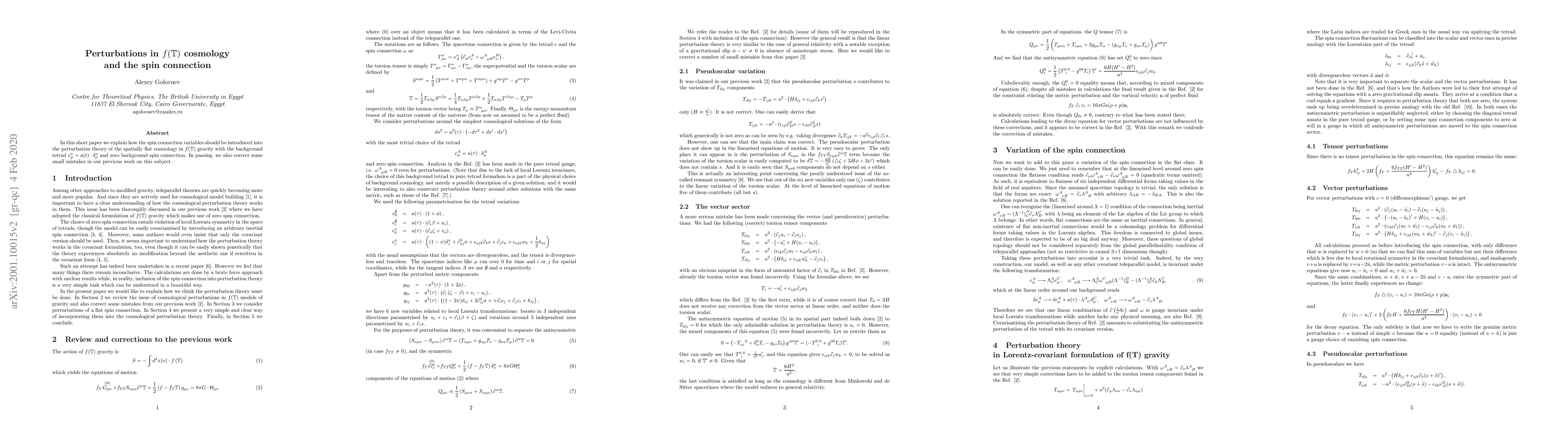 In this short paper we explain how the spin connection variables should be introduced into the perturbation theory of the spatially flat cosmology in f(T) gravity with the background tetrad $e^a_{\mu}=a(t)\cdot\delta^a_{\mu}$ and zero background spin connection. In passing, we also correct some small mistakes in our previous work on this subject.