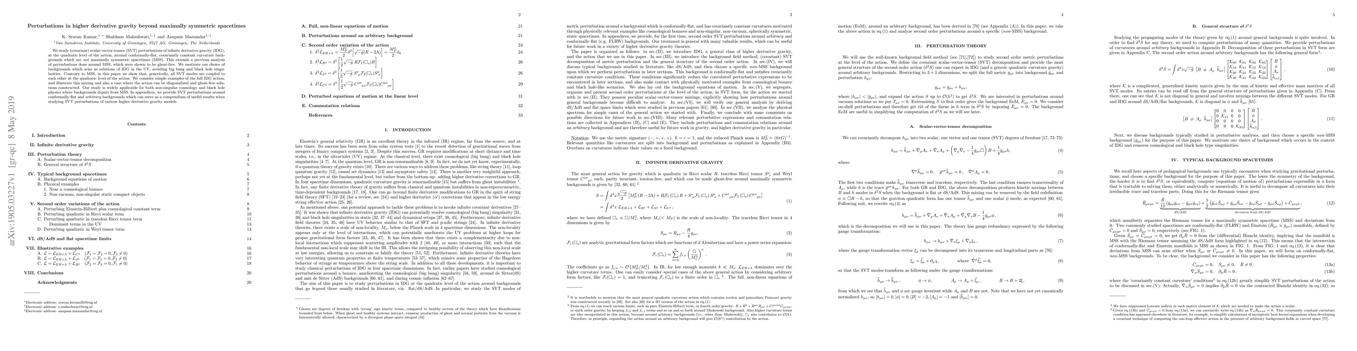 This paper investigates (covariant) scalar-vector-tensor perturbations of infinite derivative gravity around non-maximally symmetric, conformally-flat backgrounds, revealing that unlike maximally symmetric cases, all perturbation modes are generally coupled. It provides examples where the action can be diagonalized to construct ghost-free solutions.
