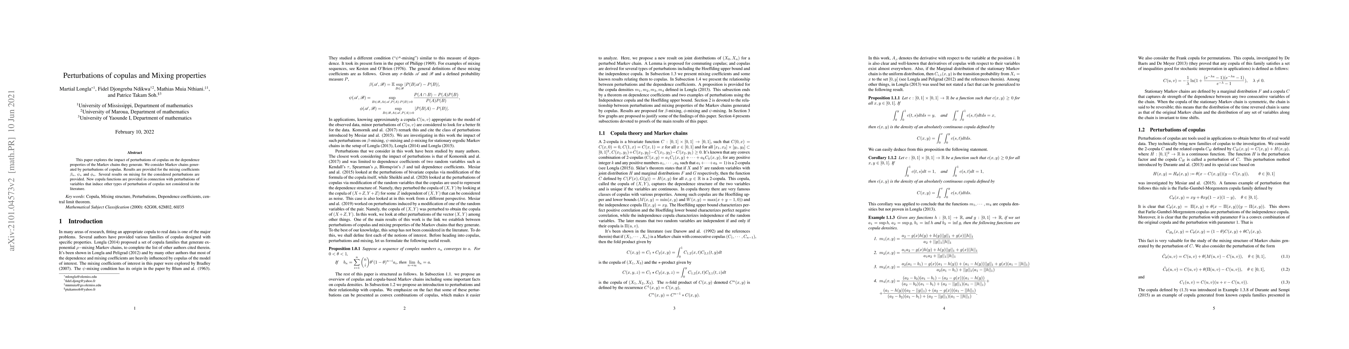 This paper investigates how perturbations of copulas affect the dependence properties of generated Markov chains, providing results on mixing coefficients $\beta_n$, $\psi_n$, and $\phi_n$. It introduces new copula functions related to variable perturbations not previously studied in the literature.