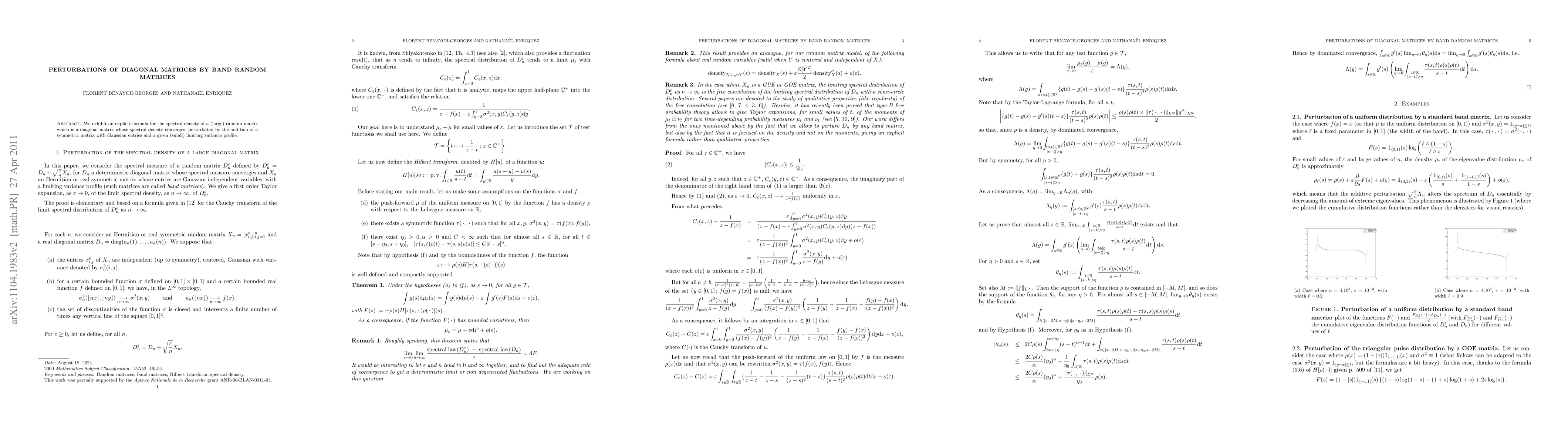 We exhibit an explicit formula for the spectral density of a (large) random matrix which is a diagonal matrix whose spectral density converges, perturbated by the addition of a symmetric matrix with Gaussian entries and a given (small) limiting variance profile.