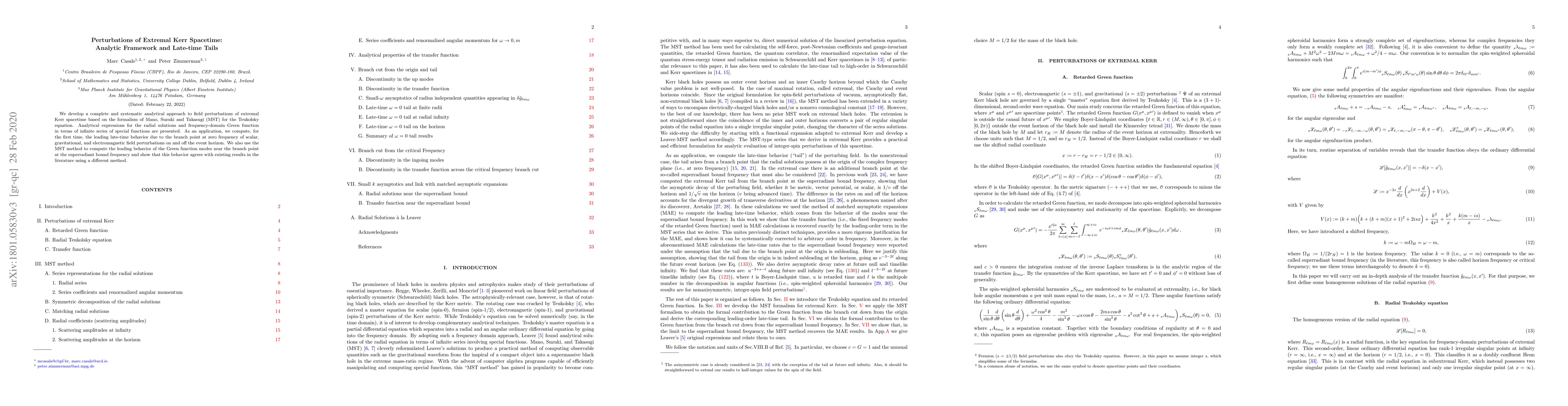 We develop a complete and systematic analytical approach to field perturbations of extremal Kerr spacetime based on the formalism of Mano, Suzuki and Takasugi (MST) for the Teukolsky equation. Analytical expressions for the radial solutions and frequency-domain Green function in terms of infinite series of special functions are presented. As an application, we compute, for the first time, the leading late-time behavior due to the branch point at zero frequency of scalar, gravitational, and electromagnetic field perturbations on and off the event horizon. We also use the MST method to compute the leading behavior of the Green function modes near the branch point at the superradiant bound frequency and show that this behavior agrees with existing results in the literature using a different method.