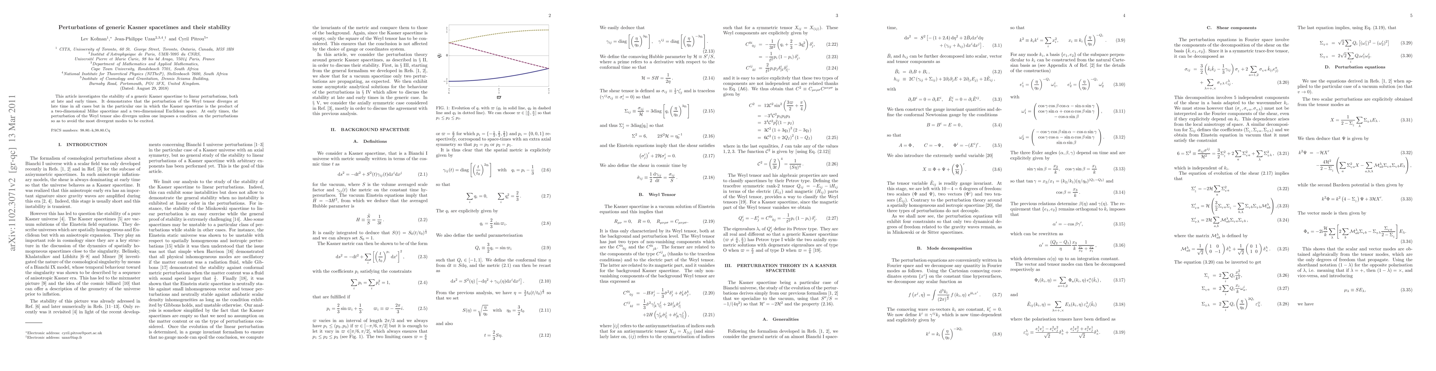 This paper investigates the stability of generic Kasner spacetimes to linear perturbations, finding that certain cases diverge at late times, while others may become unstable unless special conditions are met.