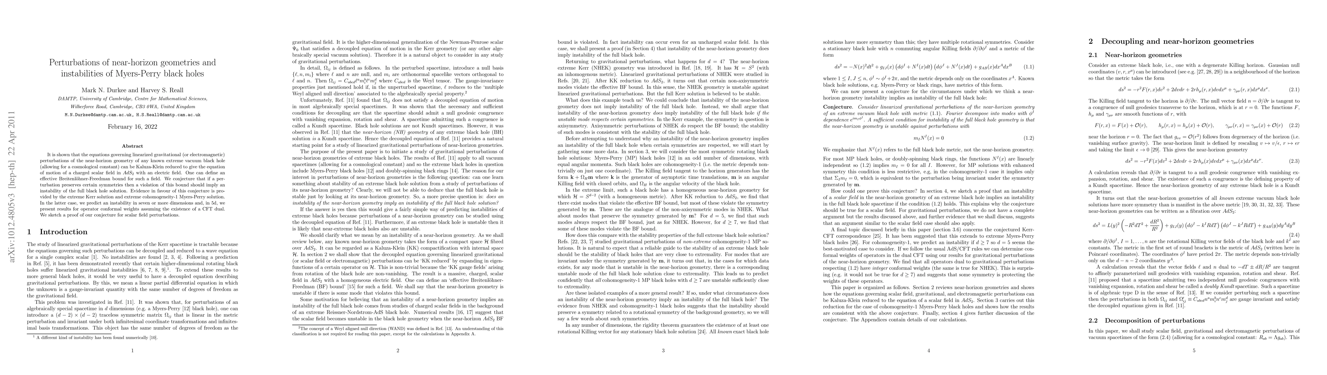 The paper investigates linearized perturbations of extreme vacuum black holes, reducing these perturbations to scalar field equations in AdS_2. It proposes a conjecture linking violations of an effective bound to instabilities in the full black hole solutions, supported by evidence from extreme Kerr and Myers-Perry black holes, with specific predictions for higher-dimensional instabilities.