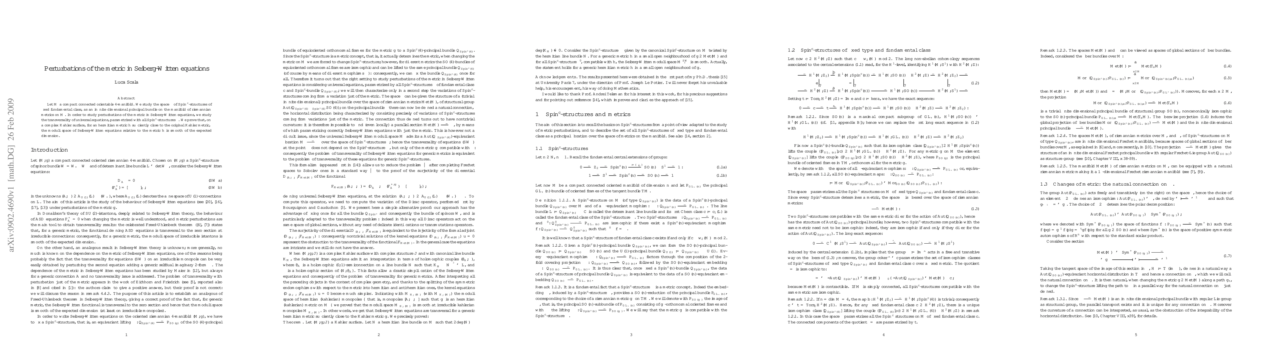 This research investigates the effect of metric perturbations on the Seiberg-Witten equations on a compact 4-manifold, focusing on the transversality of universal equations. It proves that near a Kähler metric, the moduli space of solutions to the Seiberg-Witten equations retains its expected dimension and smoothness.