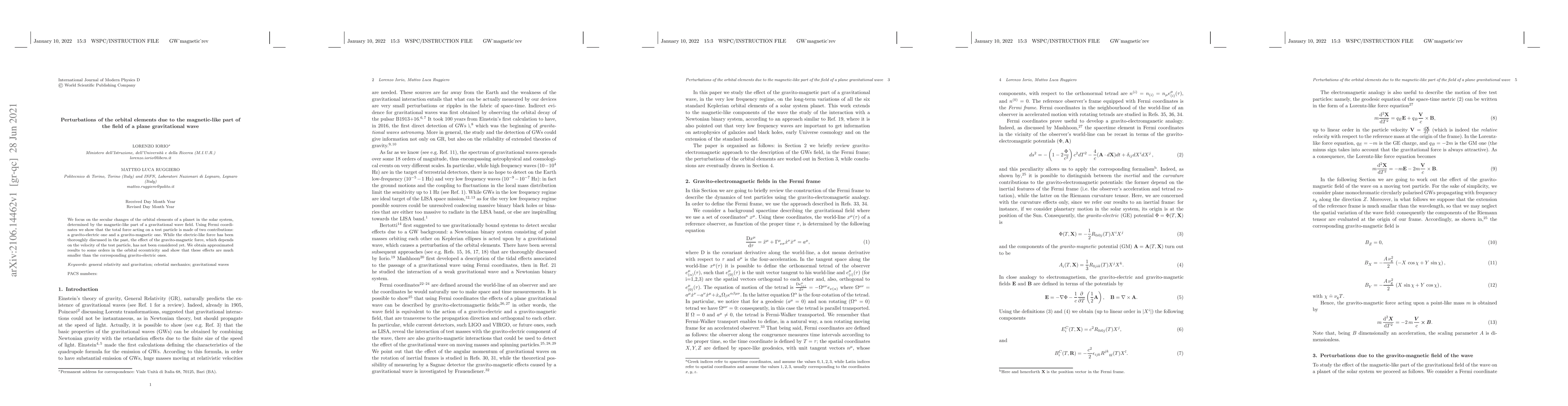 We focus on the secular changes of the orbital elements of a planet in the solar system, determined by the magnetic-like part of a gravitational wave field. Using Fermi coordinates we show that the total force acting on a test particle is made of two contributions: a gravito-electric one and a gravito-magnetic one. While the electric-like force has been thoroughly discussed in the past, the effect of the gravito-magnetic force, which depends on the velocity of the test particle, has not been considered yet. We obtain approximated results to some orders in the orbital eccentricity and show that these effects are much smaller than the corresponding gravito-electric ones.