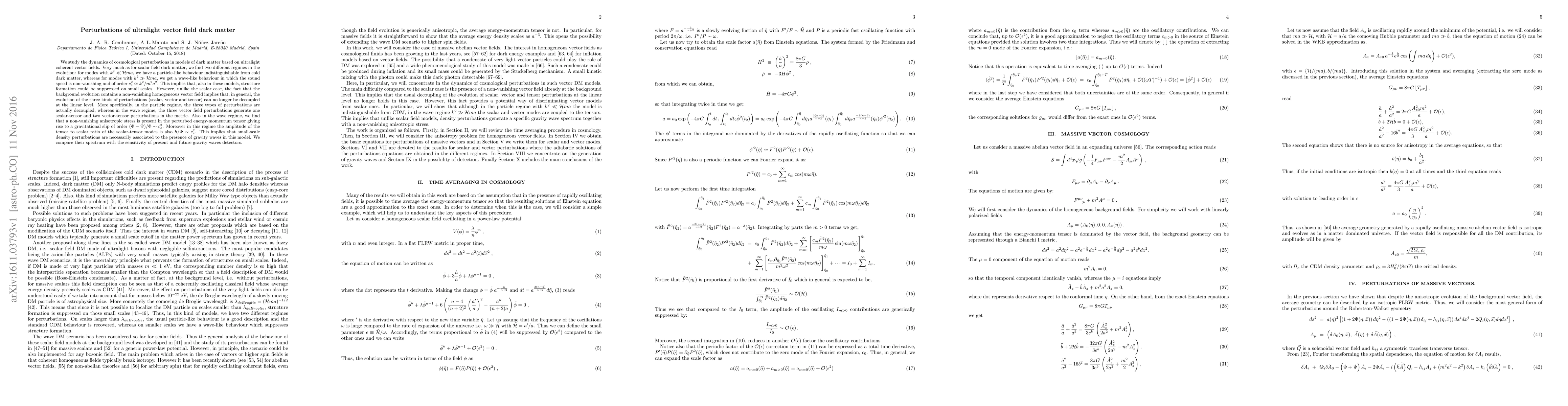 We study the dynamics of cosmological perturbations in models of dark matter based on ultralight coherent vector fields. Very much as for scalar field dark matter, we find two different regimes in the evolution: for modes with $k^2\ll {\cal H}ma$, we have a particle-like behaviour indistinguishable from cold dark matter, whereas for modes with $k^2\gg {\cal H}ma$, we get a wave-like behaviour in which the sound speed is non-vanishing and of order $c_s^2\simeq k^2/m^2a^2$. This implies that, also in these models, structure formation could be suppressed on small scales. However, unlike the scalar case, the fact that the background evolution contains a non-vanishing homogeneous vector field implies that, in general, the evolution of the three kinds of perturbations (scalar, vector and tensor) can no longer be decoupled at the linear level. More specifically, in the particle regime, the three types of perturbations are actually decoupled, whereas in the wave regime, the three vector field perturbations generate one scalar-tensor and two vector-tensor perturbations in the metric. Also in the wave regime, we find that a non-vanishing anisotropic stress is present in the perturbed energy-momentum tensor giving rise to a gravitational slip of order $(\Phi-\Psi)/\Phi\sim c_s^2$. Moreover in this regime the amplitude of the tensor to scalar ratio of the scalar-tensor modes is also $h/\Phi\sim c_s^2$. This implies that small-scale density perturbations are necessarily associated to the presence of gravity waves in this model. We compare their spectrum with the sensitivity of present and future gravity waves detectors.