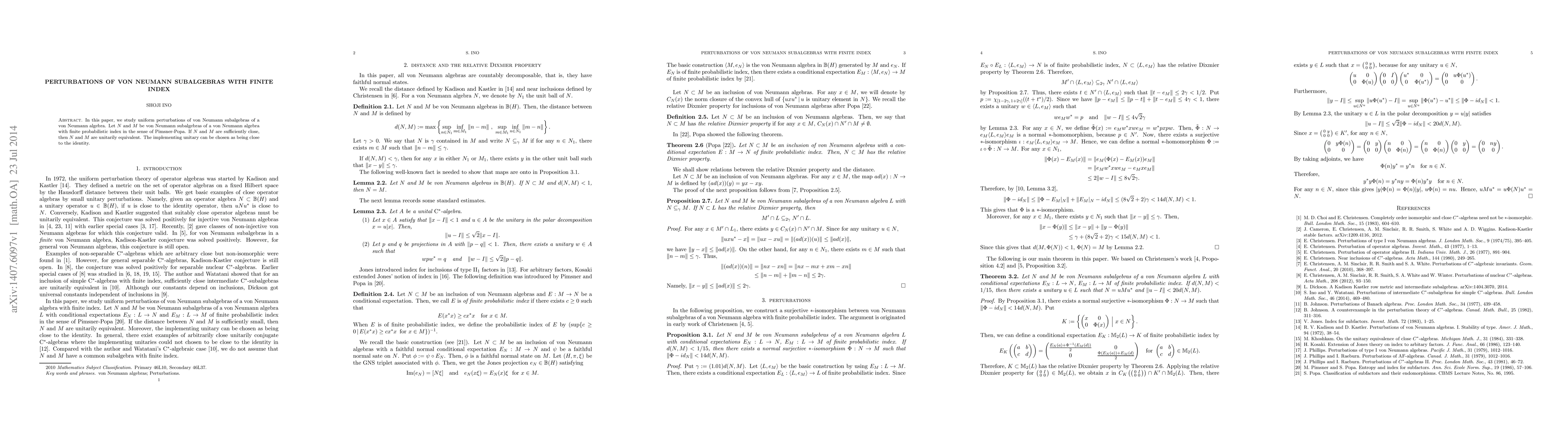 This paper investigates how uniform perturbations of von Neumann subalgebras within a larger von Neumann algebra can lead to unitarily equivalent subalgebras if they are sufficiently close, with the implementing unitary being close to the identity. The study uses the notion of finite probabilistic index as defined by Pimsner-Popa.