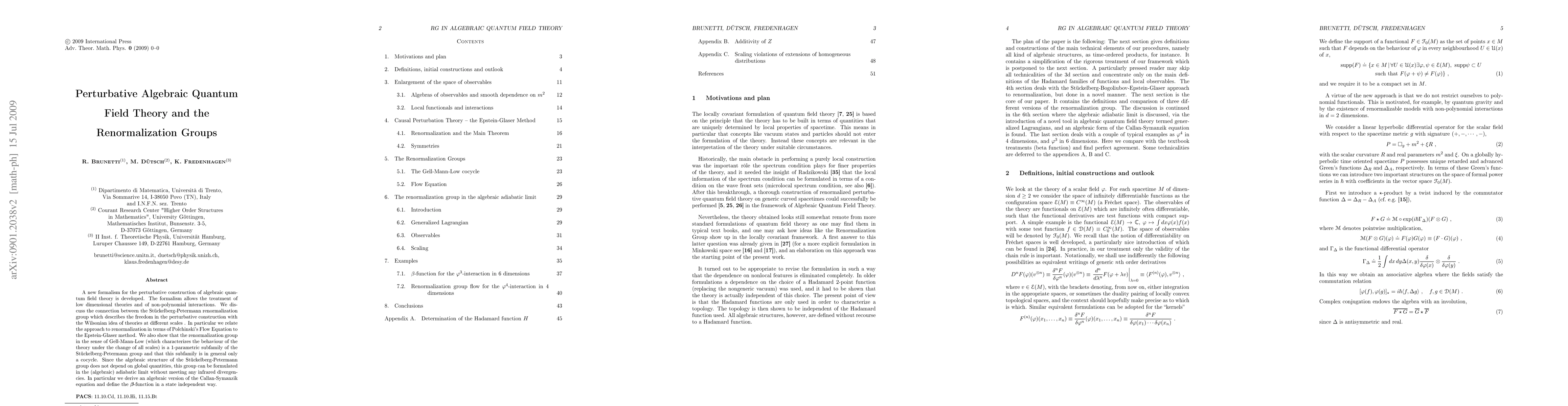 A new formalism for the perturbative construction of algebraic quantum field theory is developed. The formalism allows the treatment of low dimensional theories and of non-polynomial interactions. We discuss the connection between the Stueckelberg-Petermann renormalization group which describes the freedom in the perturbative construction with the Wilsonian idea of theories at different scales . In particular we relate the approach to renormalization in terms of Polchinski's Flow Equation to the Epstein-Glaser method. We also show that the renormalization group in the sense of Gell-Mann-Low (which characterizes the behaviour of the theory under the change of all scales) is a 1-parametric subfamily of the Stueckelberg-Petermann group and that this subfamily is in general only a cocycle. Since the algebraic structure of the Stueckelberg-Petermann group does not depend on global quantities, this group can be formulated in the (algebraic) adiabatic limit without meeting any infrared divergencies. In particular we derive an algebraic version of the Callan-Symanzik equation and define the beta-function in a state independent way.