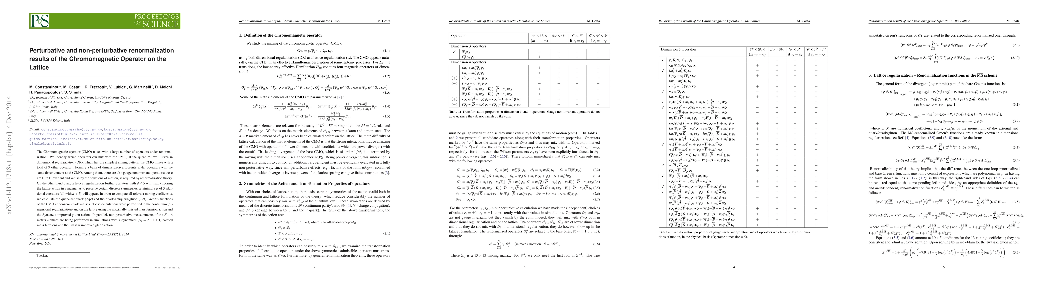 The Chromomagnetic operator (CMO) mixes with a large number of operators under renormalization. We identify which operators can mix with the CMO, at the quantum level. Even in dimensional regularization (DR), which has the simplest mixing pattern, the CMO mixes with a total of 9 other operators, forming a basis of dimension-five, Lorentz scalar operators with the same flavor content as the CMO. Among them, there are also gauge noninvariant operators; these are BRST invariant and vanish by the equations of motion, as required by renormalization theory. On the other hand using a lattice regularization further operators with $d \leq 5$ will mix; choosing the lattice action in a manner as to preserve certain discrete symmetries, a minimul set of 3 additional operators (all with $d<5$) will appear. In order to compute all relevant mixing coefficients, we calculate the quark-antiquark (2-pt) and the quark-antiquark-gluon (3-pt) Green's functions of the CMO at nonzero quark masses. These calculations were performed in the continuum (dimensional regularization) and on the lattice using the maximally twisted mass fermion action and the Symanzik improved gluon action. In parallel, non-perturbative measurements of the $K-\pi$ matrix element are being performed in simulations with 4 dynamical ($N_f = 2+1+1$) twisted mass fermions and the Iwasaki improved gluon action.